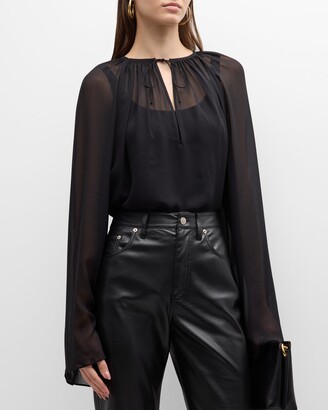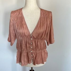 frame silk shirred short sleeve