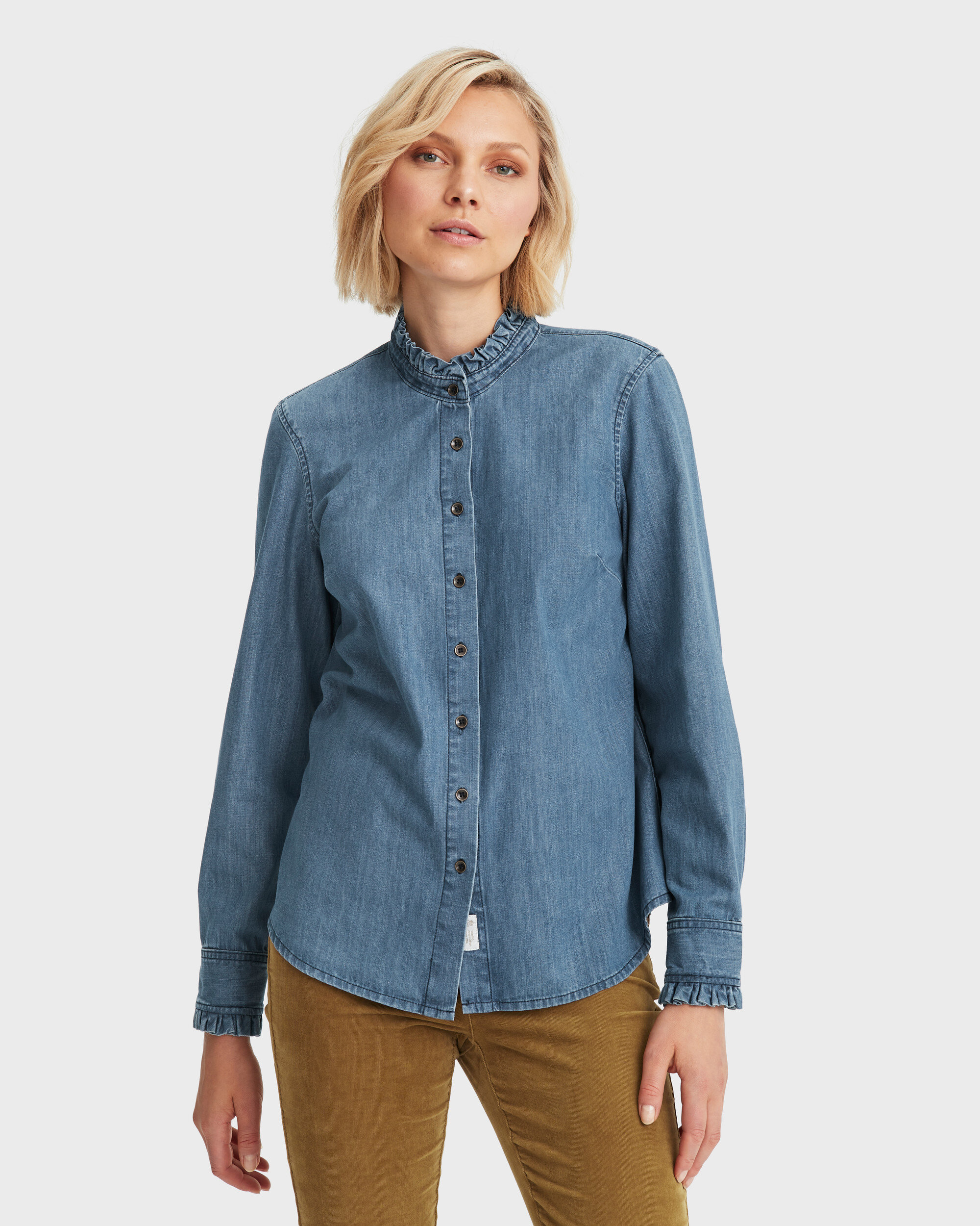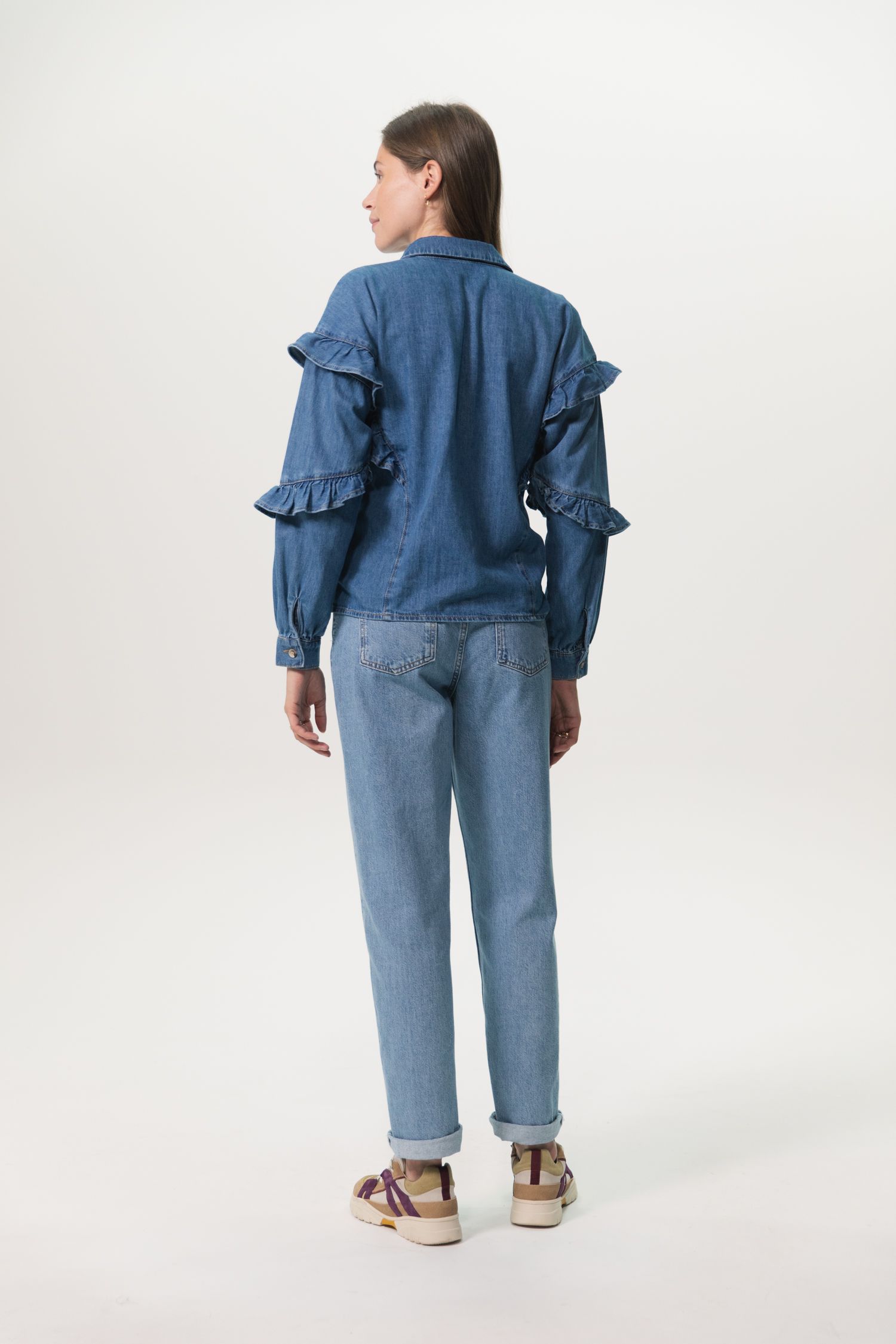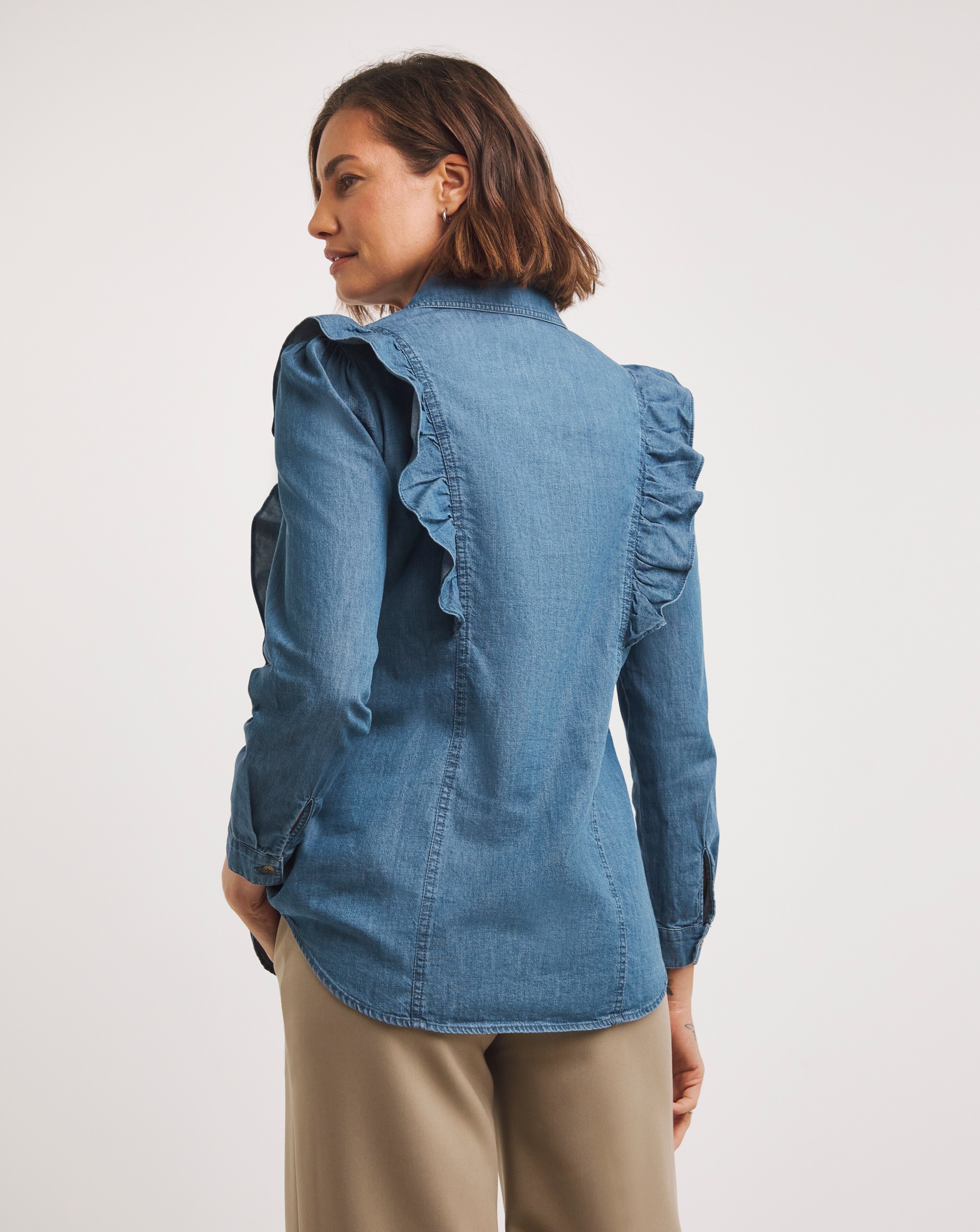 frilled denim shirt