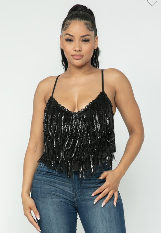 fringe sequin top