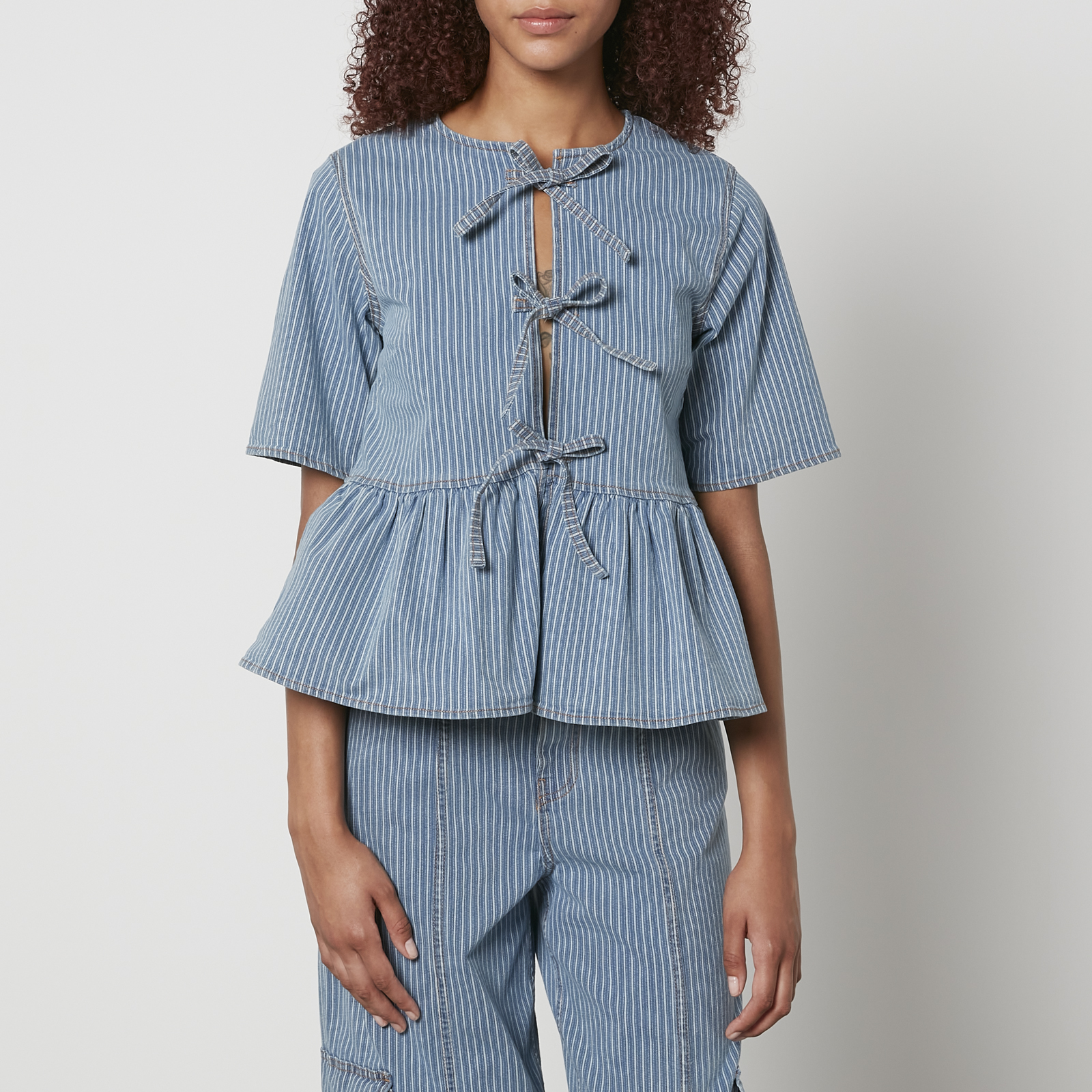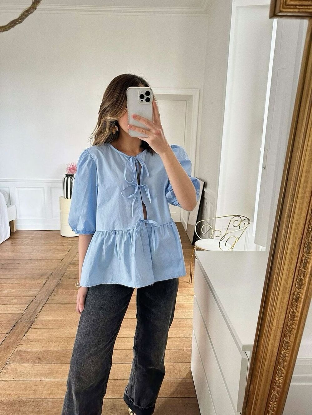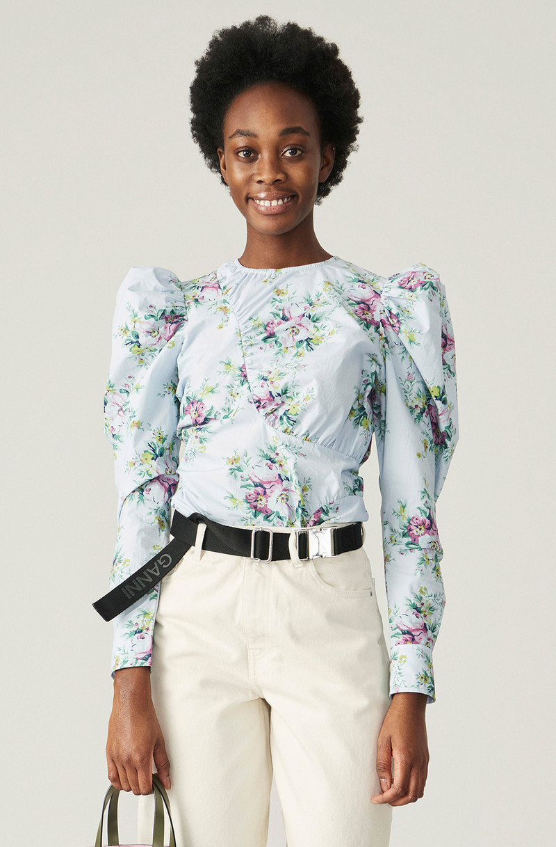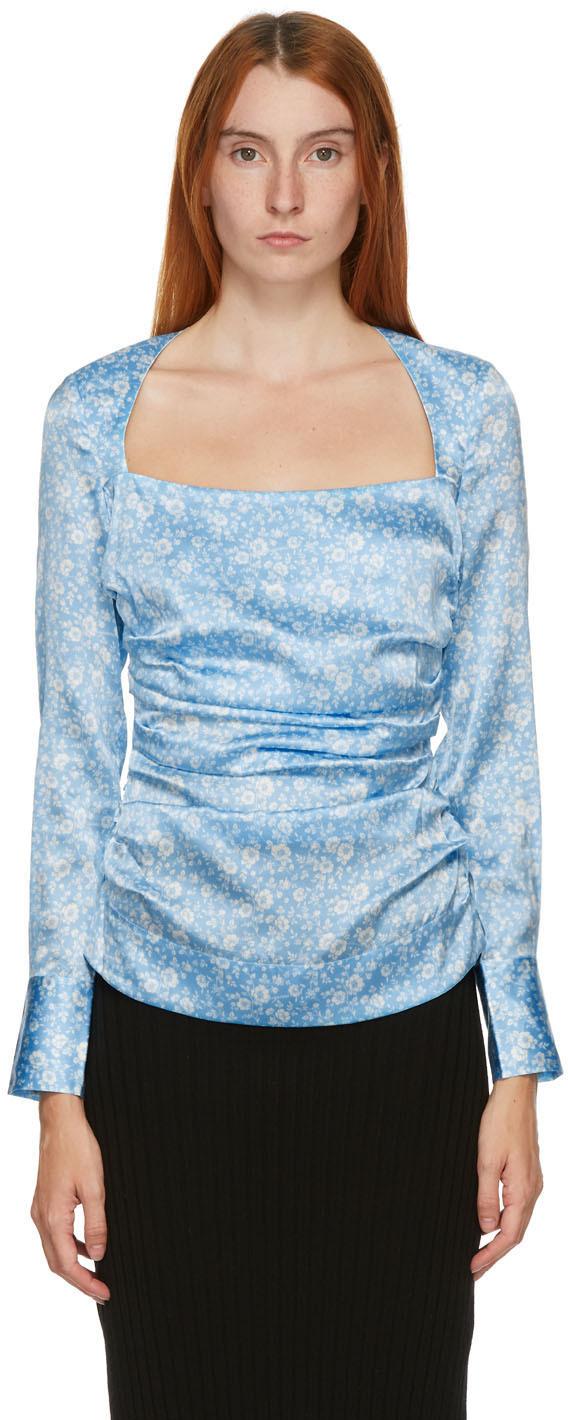 ganni blue blouse