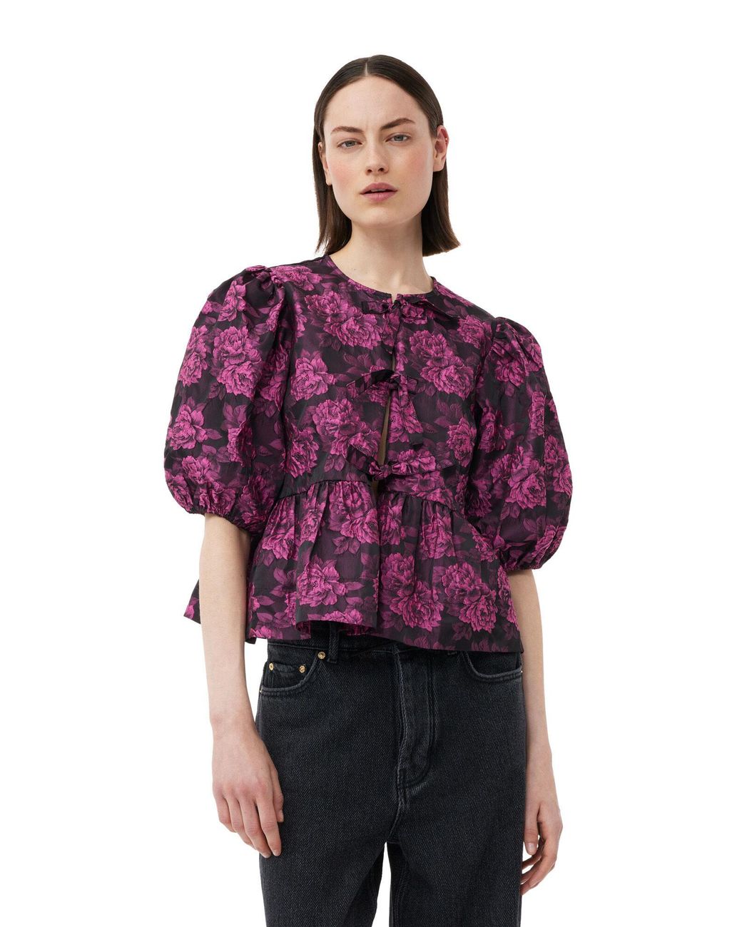 ganni jacquard blouse