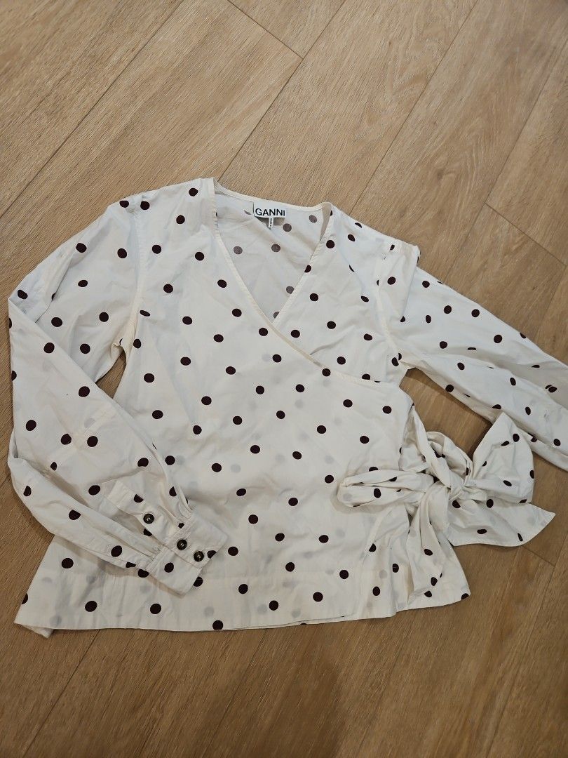 ganni polka dot top