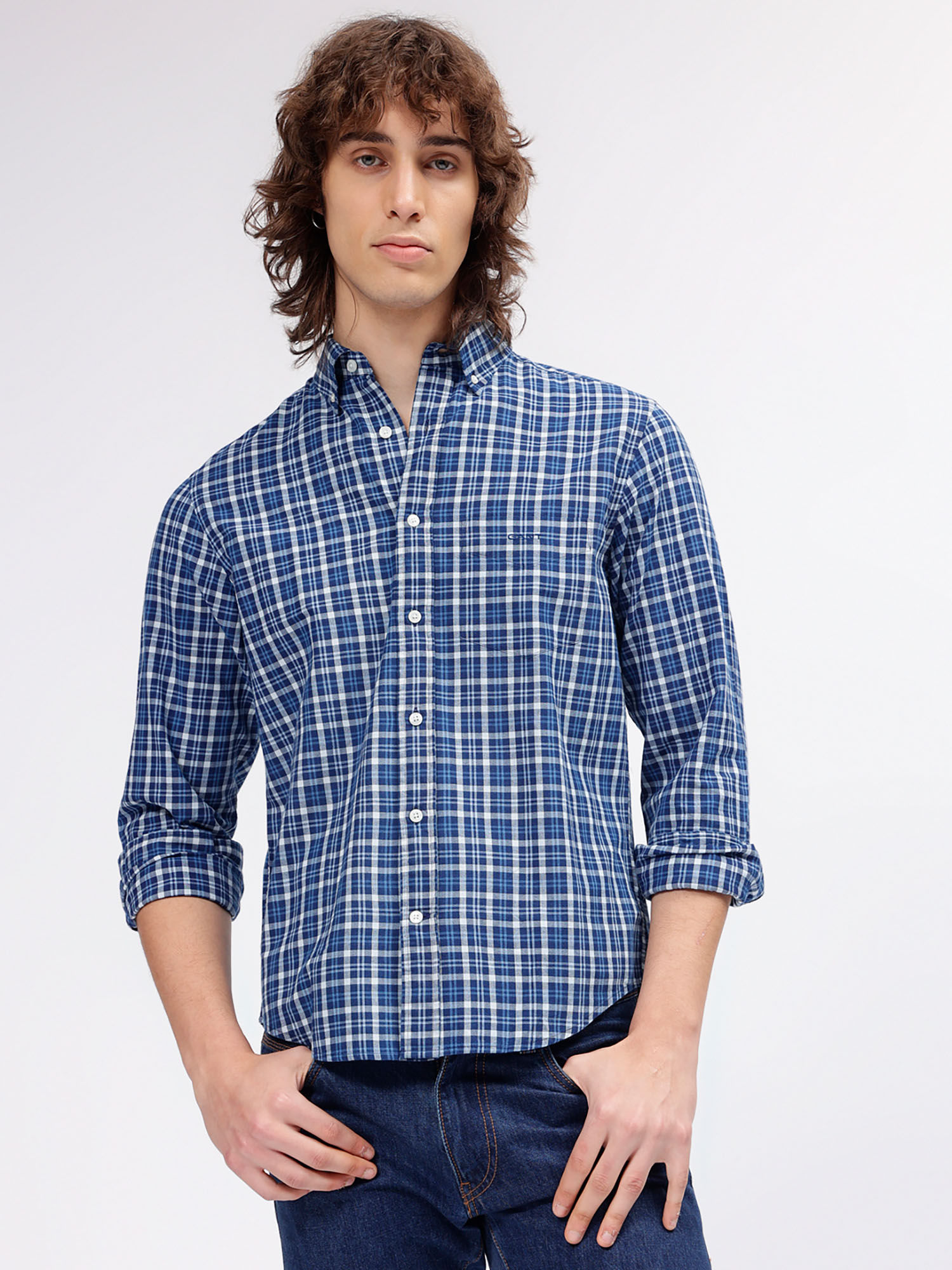 gant blue check shirt