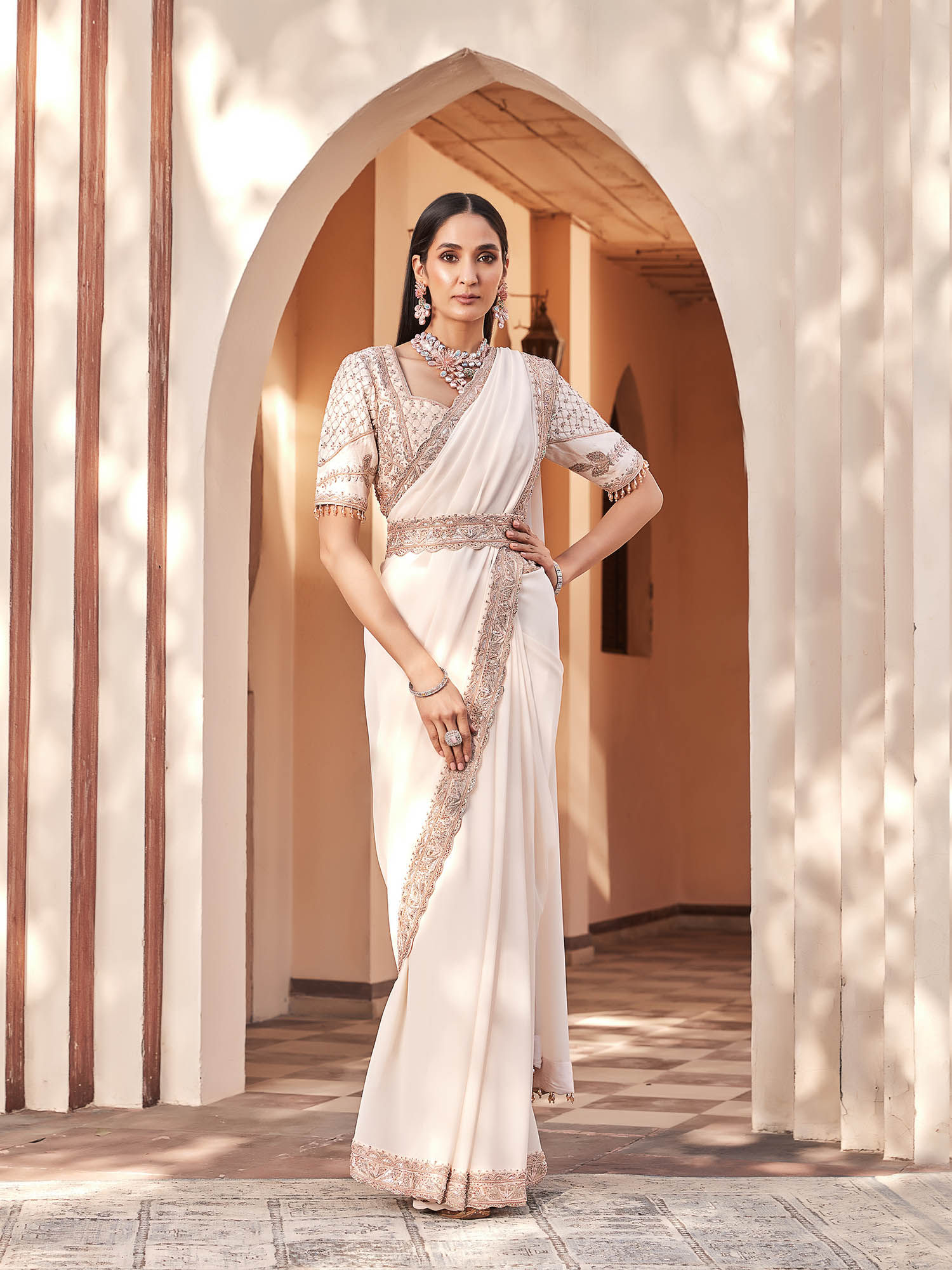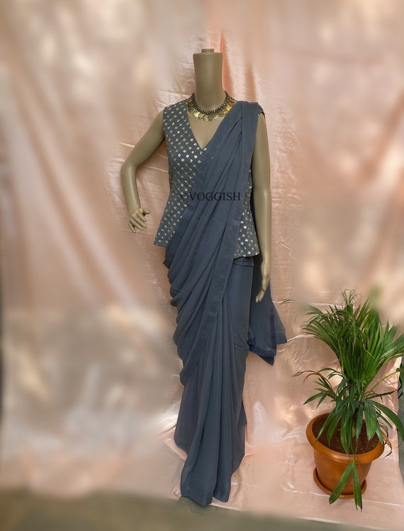 georgette saree with readymade blouse