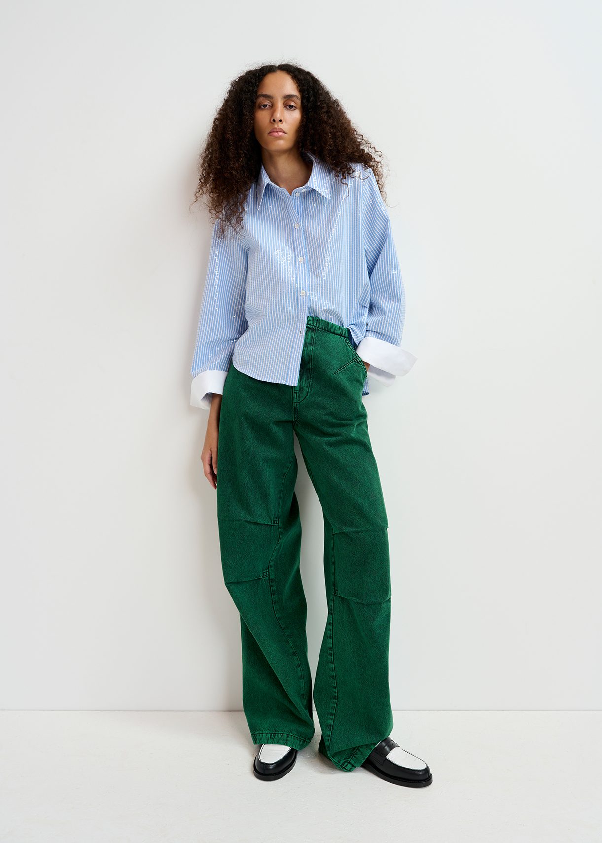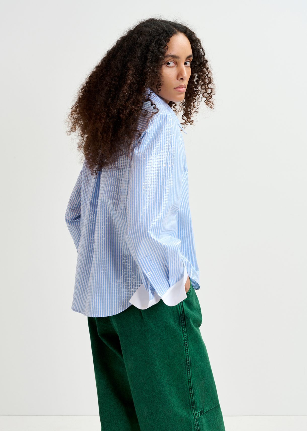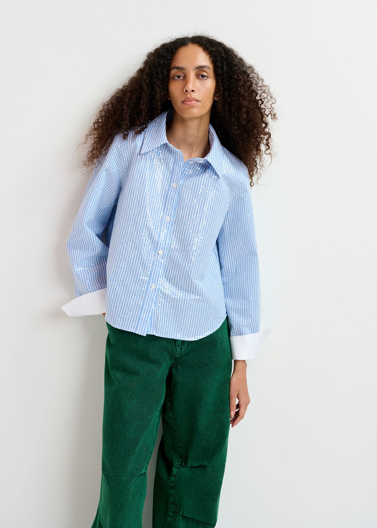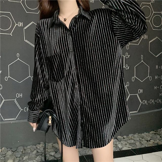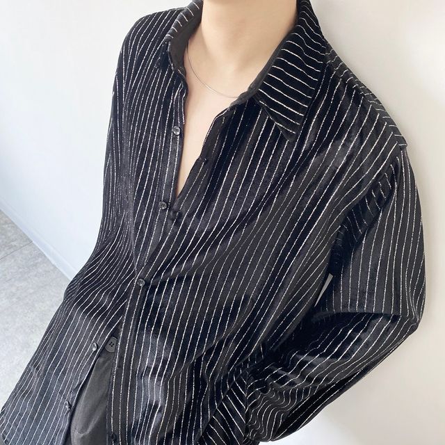glitter striped button up blouse