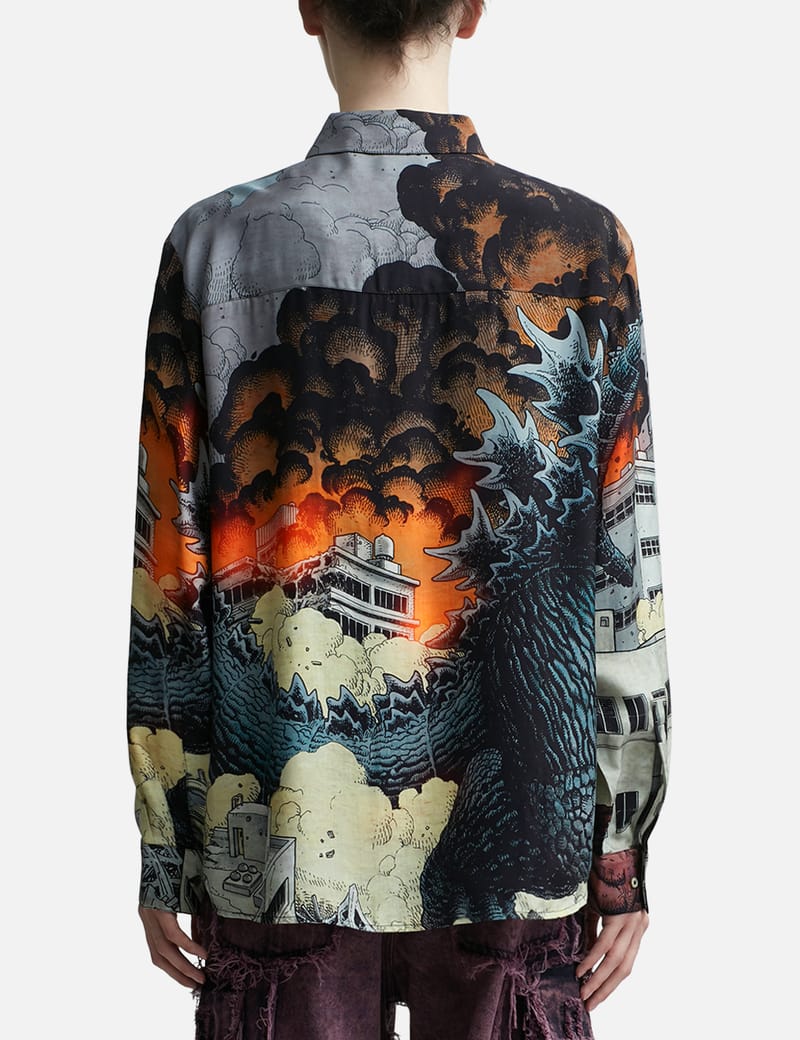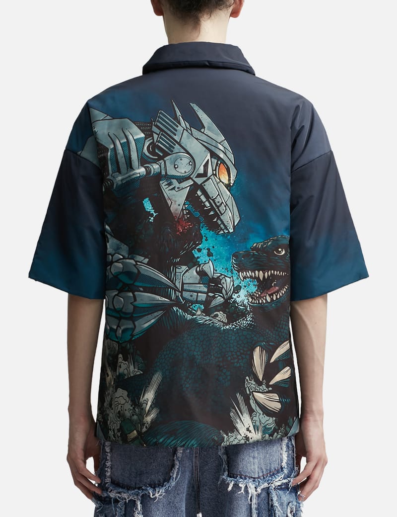 godzilla button up shirt