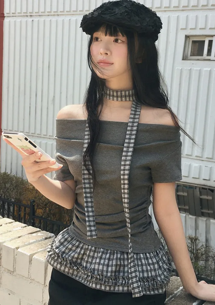 gray off shoulder top