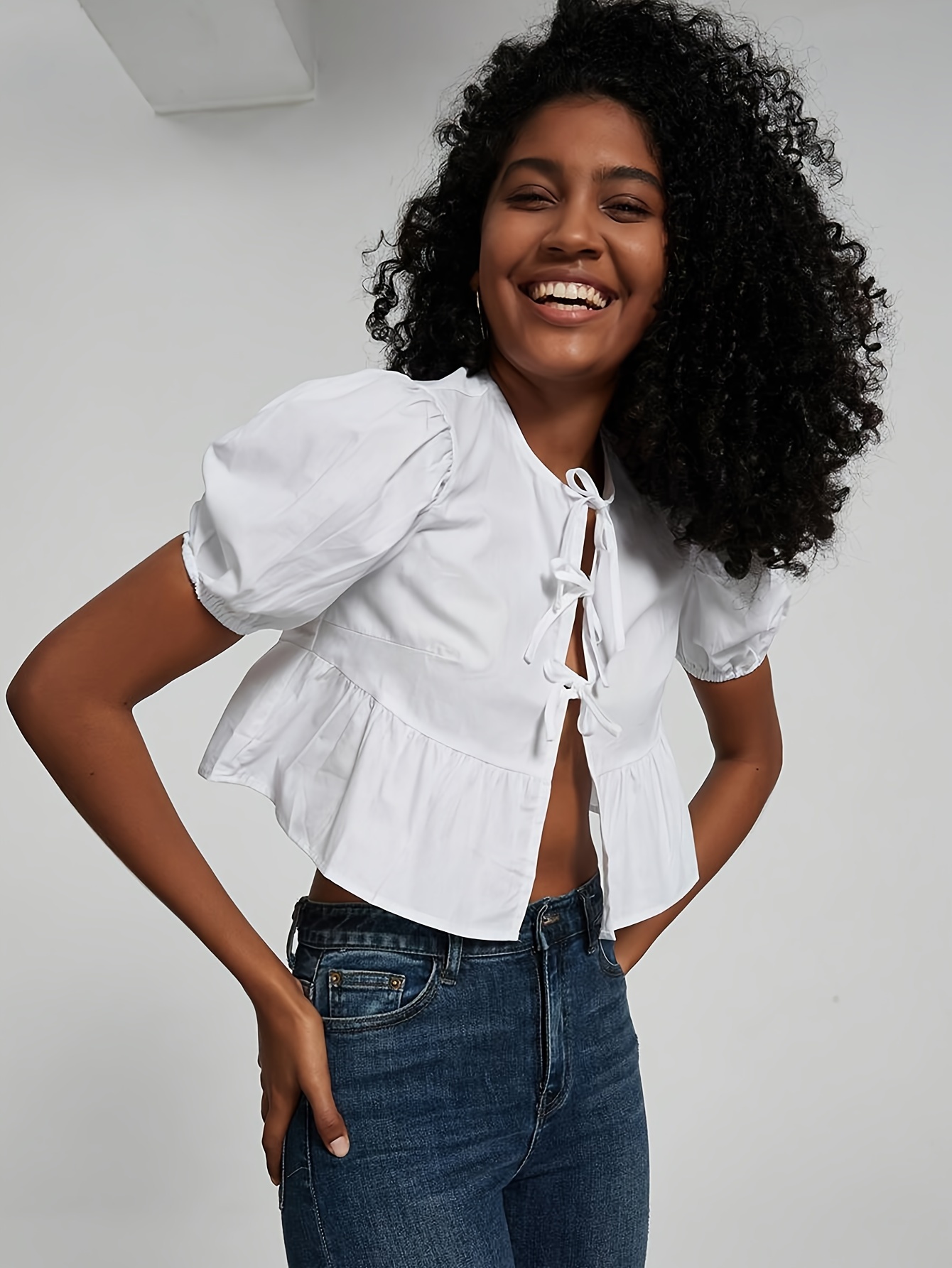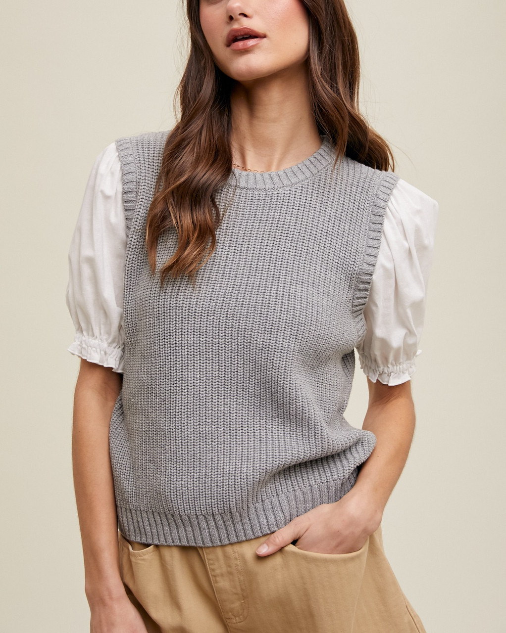 gray puff sleeve top