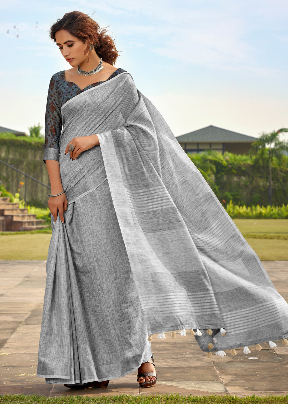 gray saree blouse