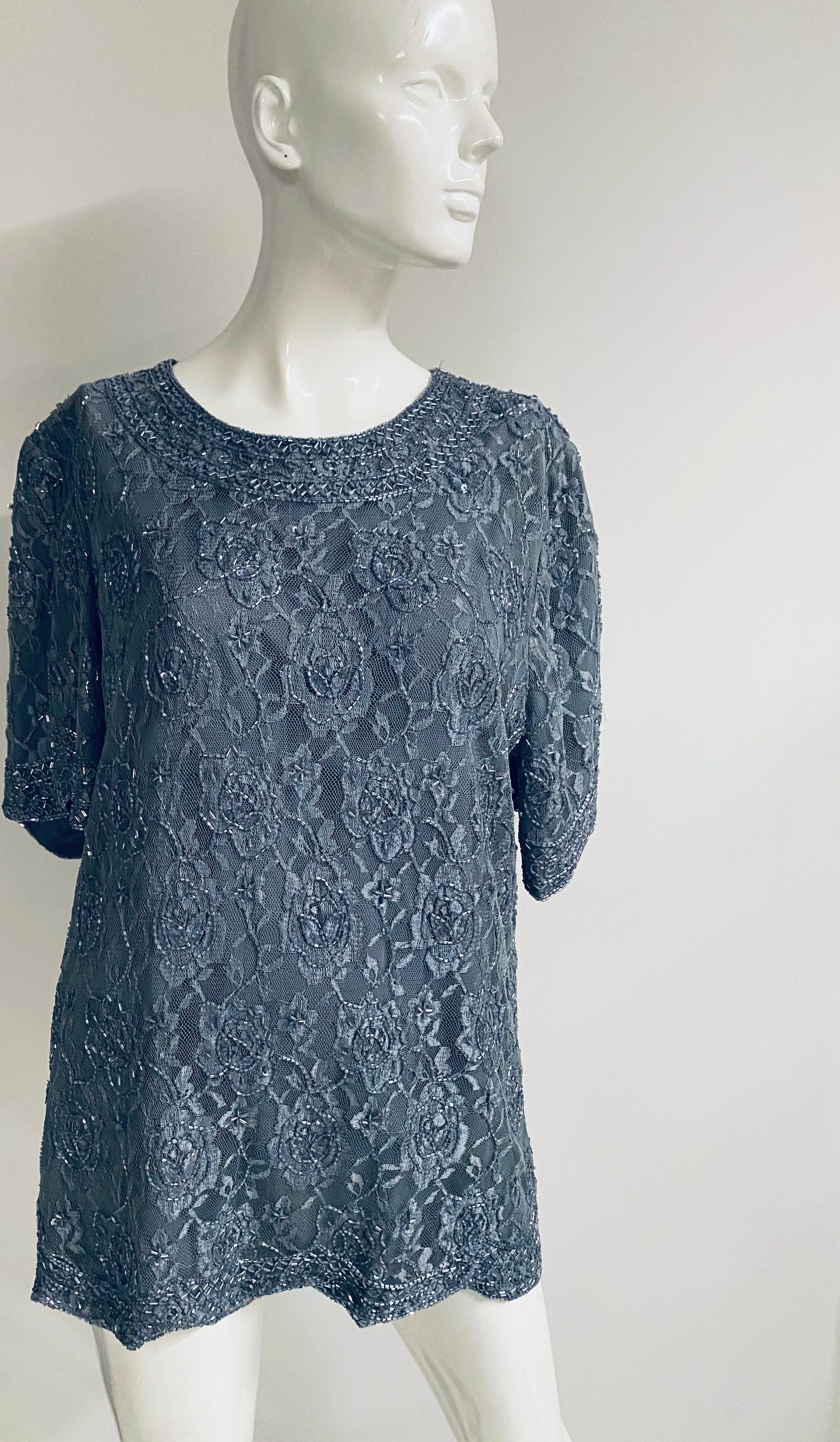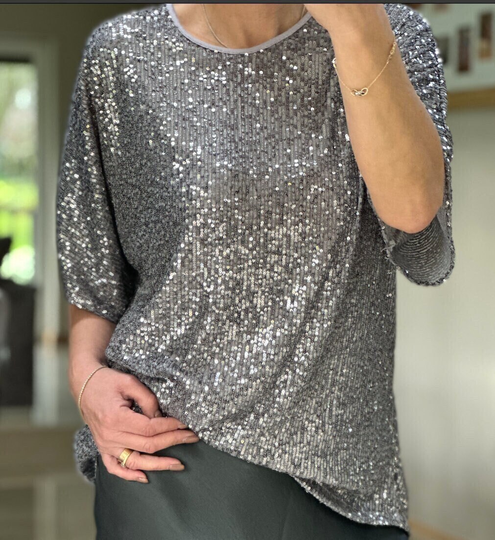 gray sequin top