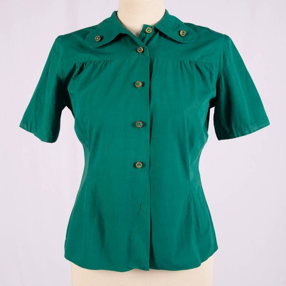 green button up blouse