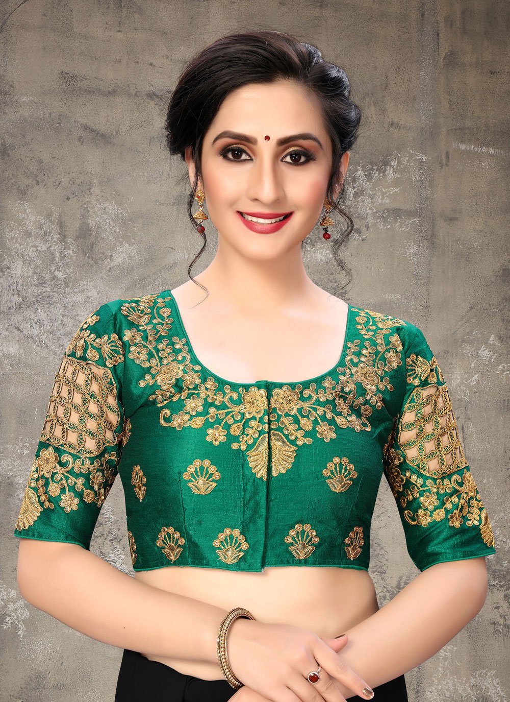 green embroidered blouse