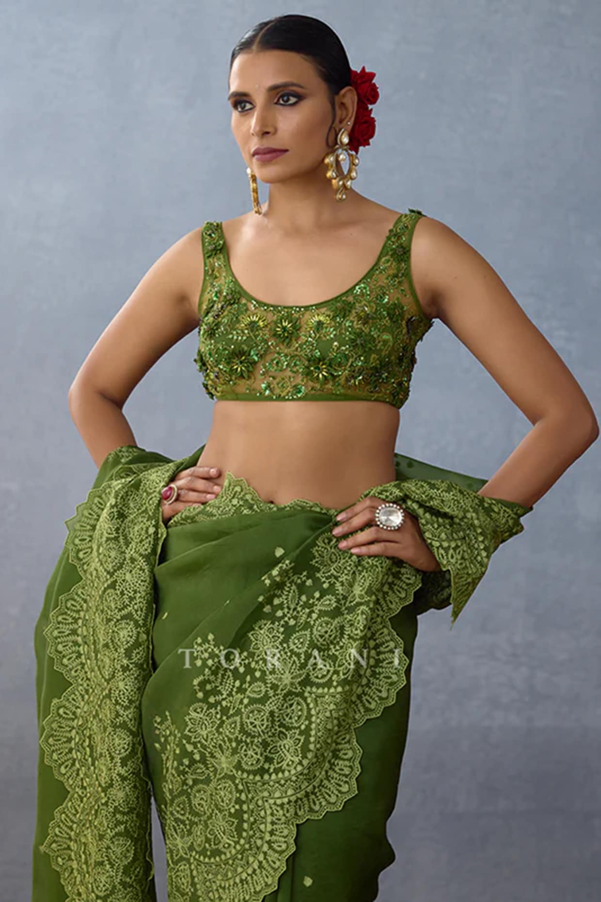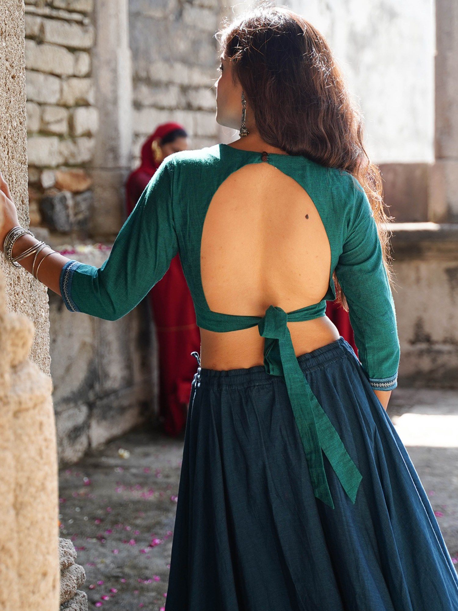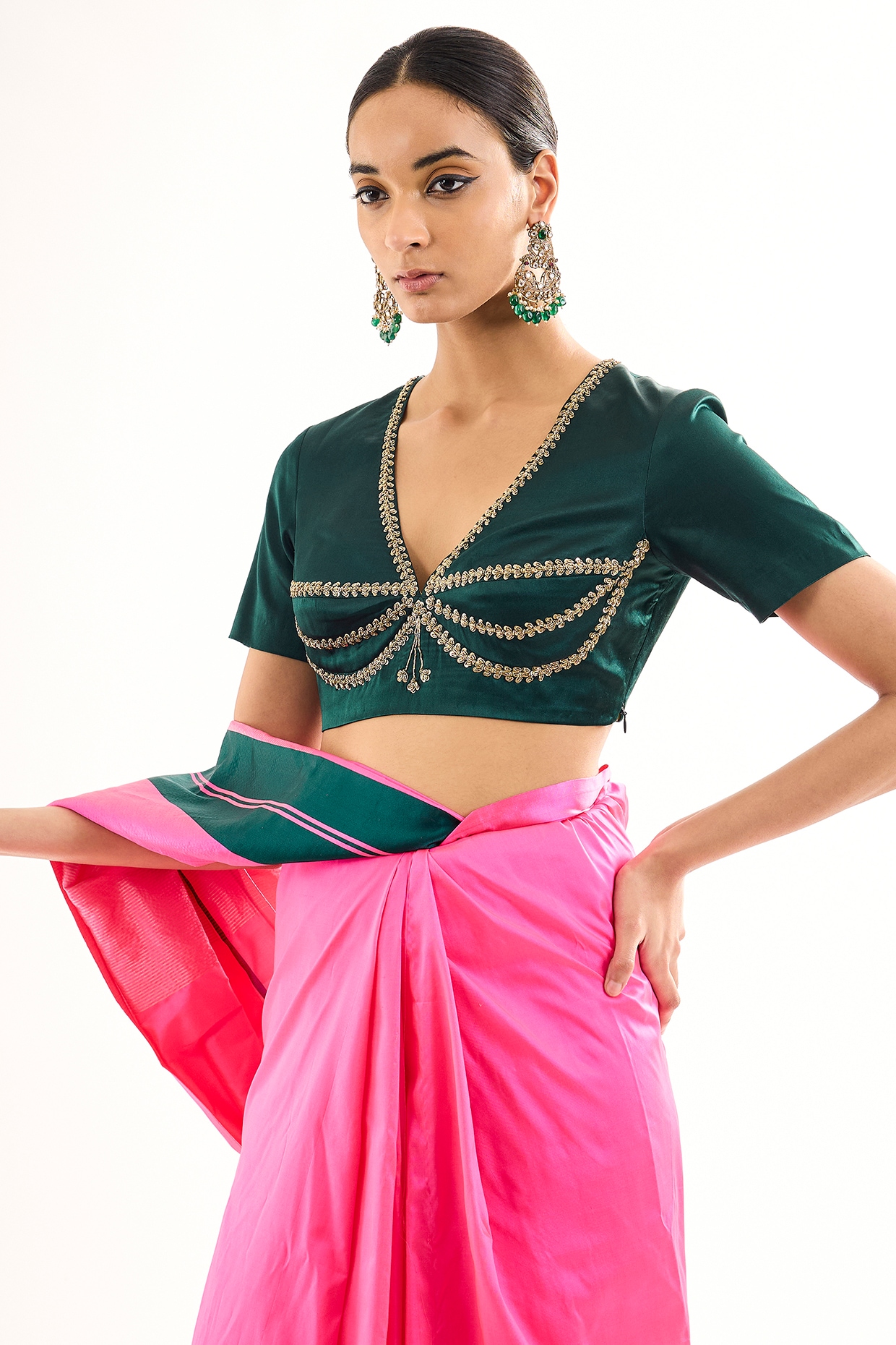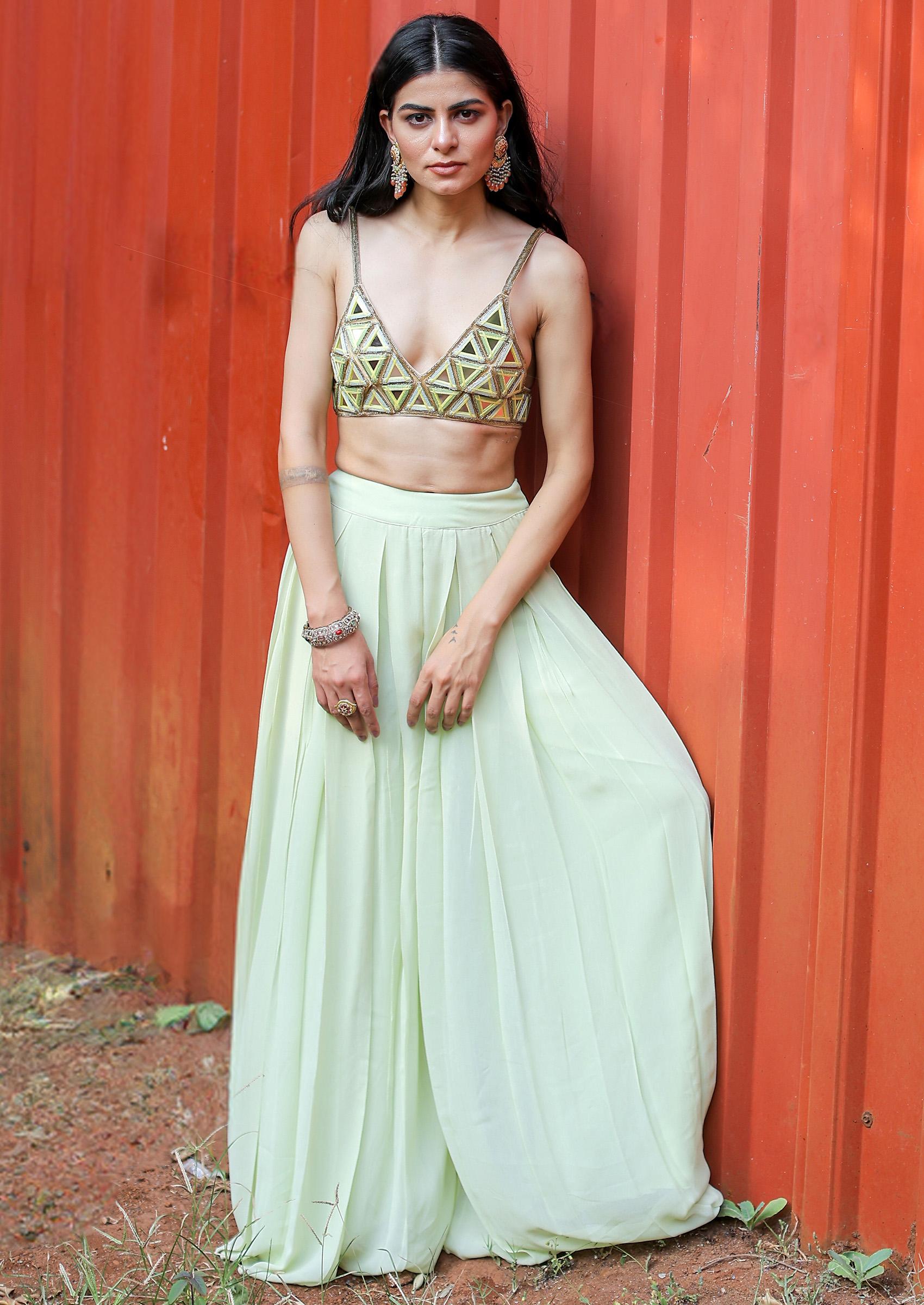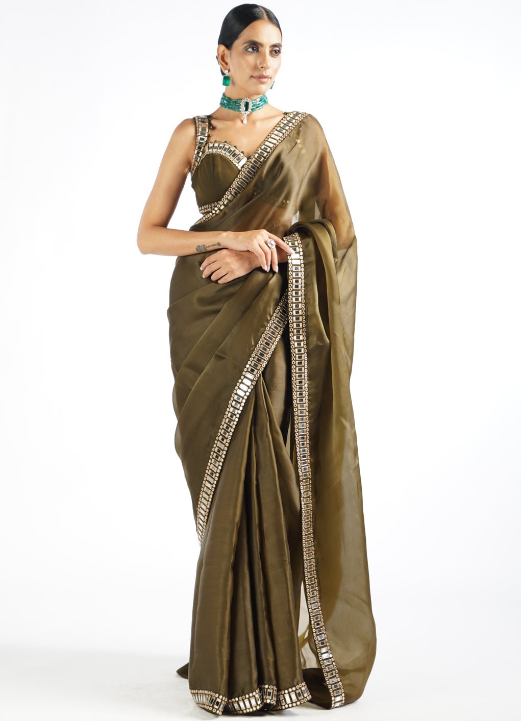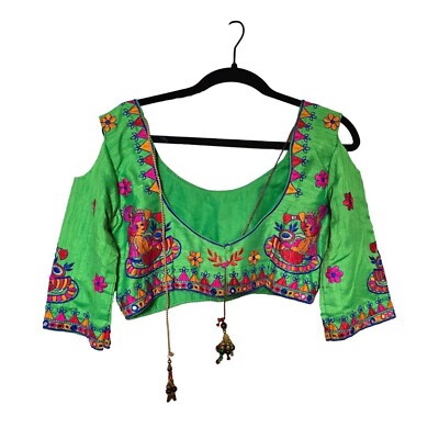 green mirror work blouse
