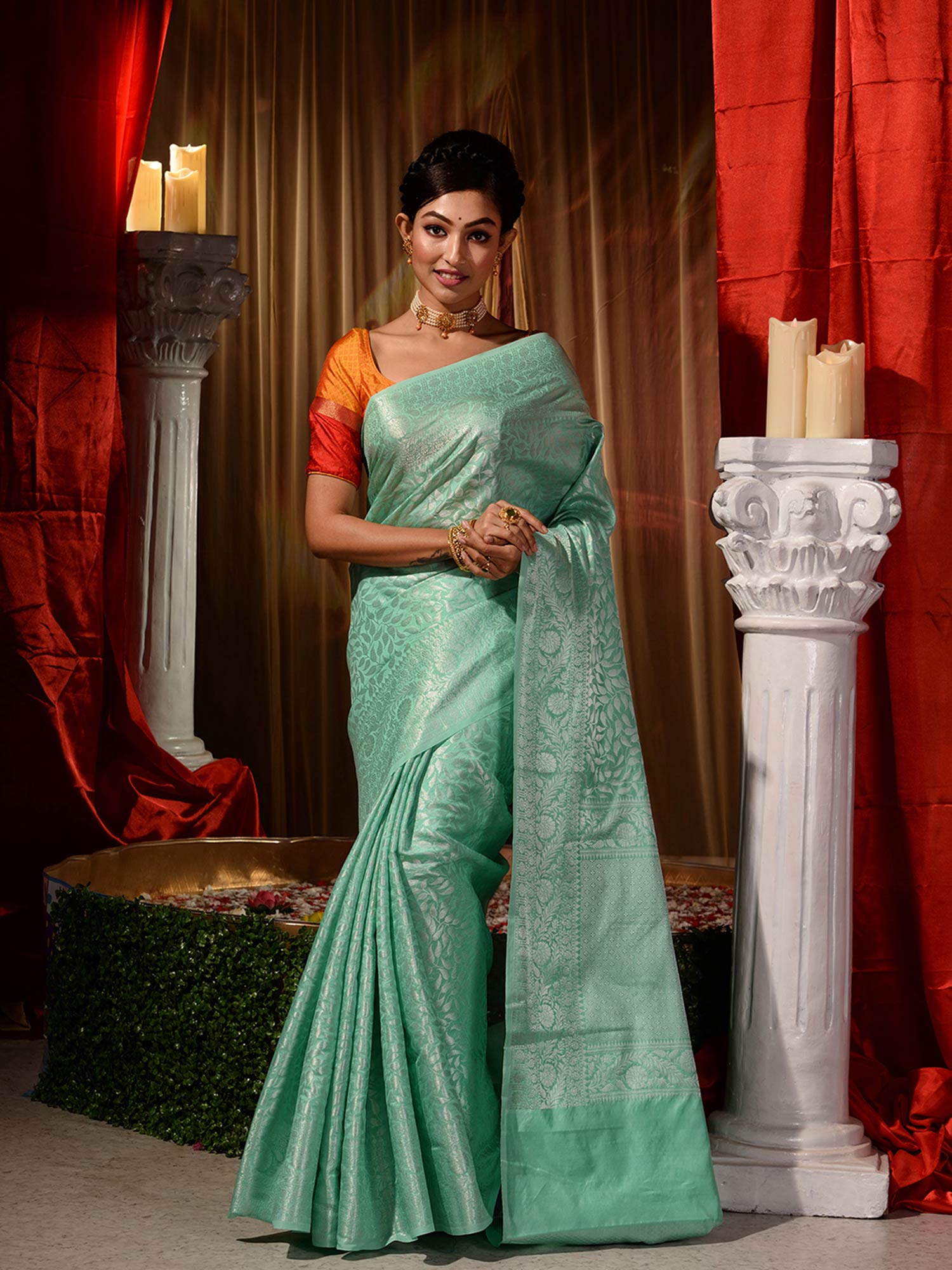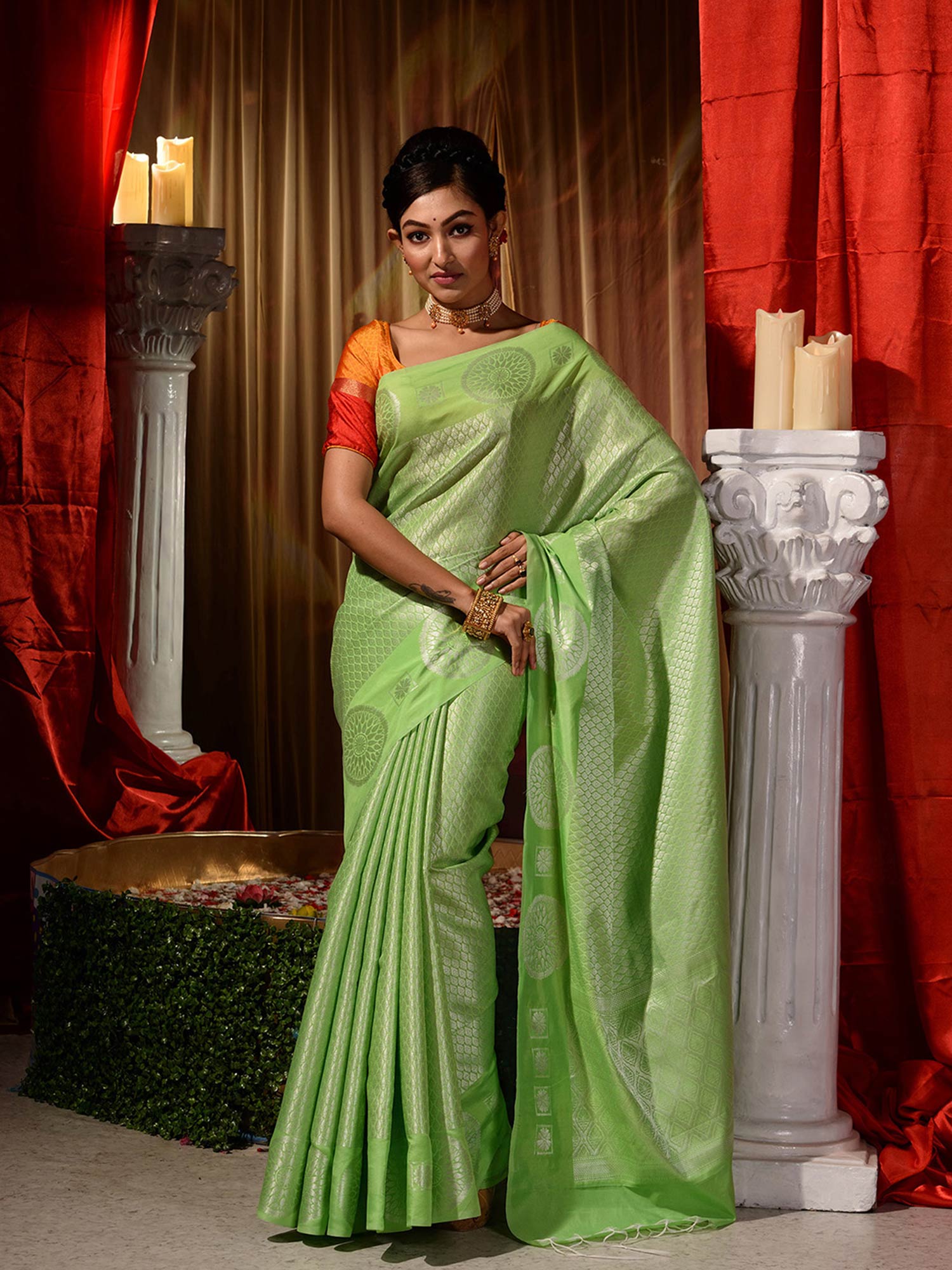 green pattu blouse