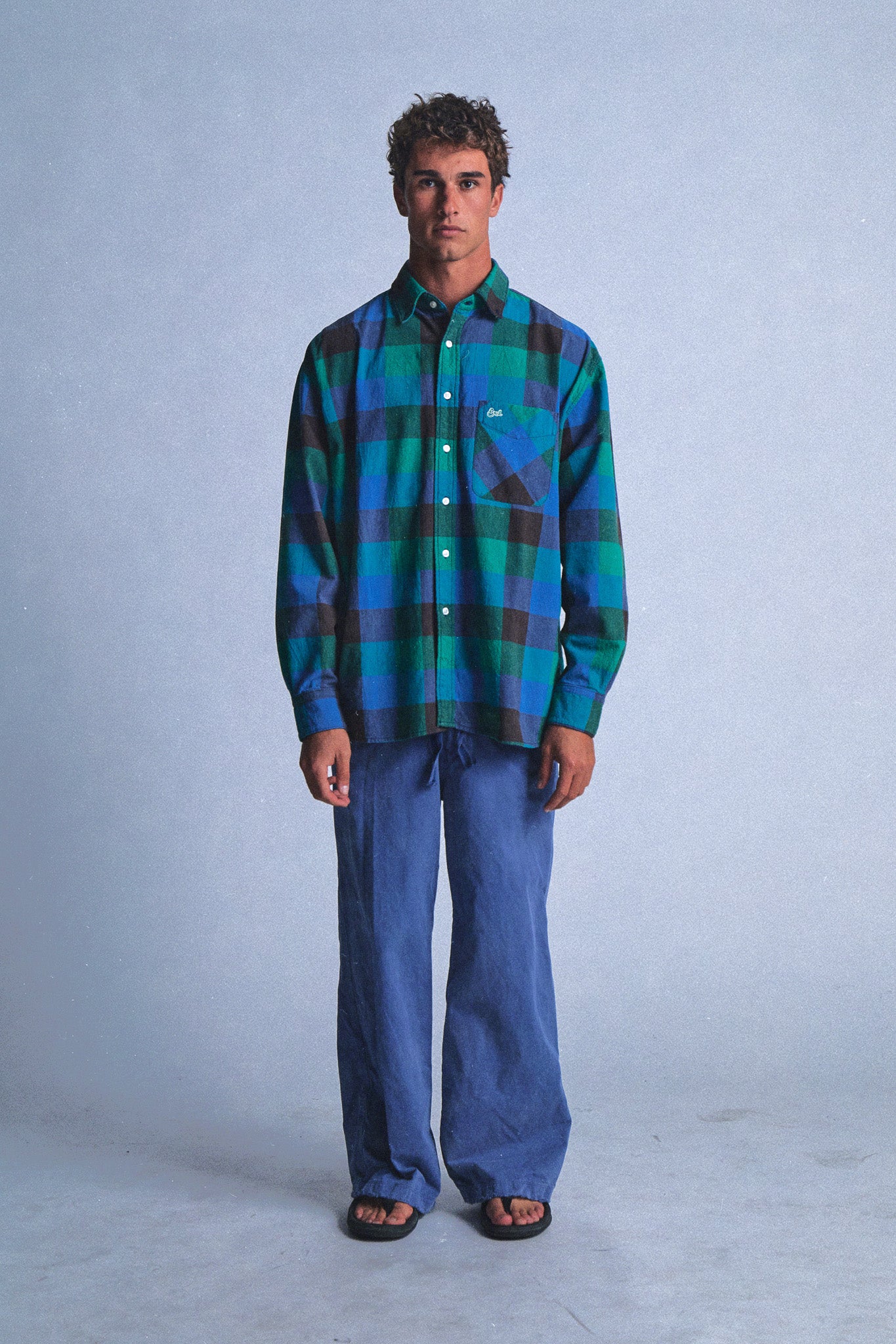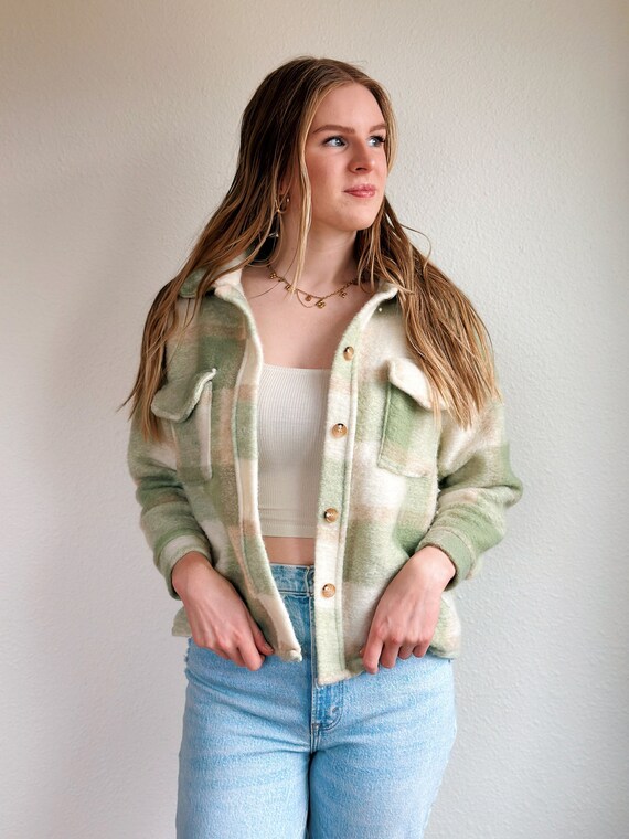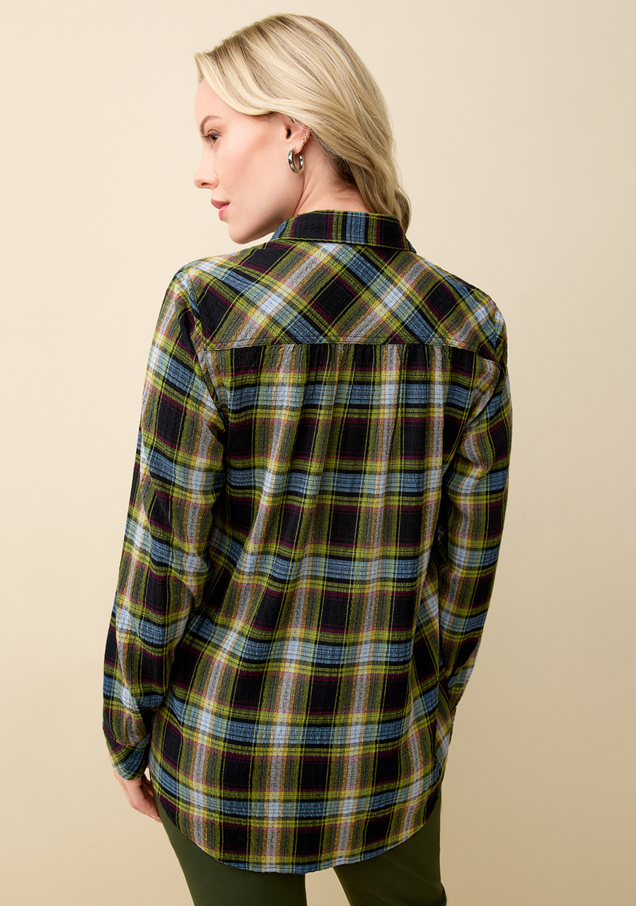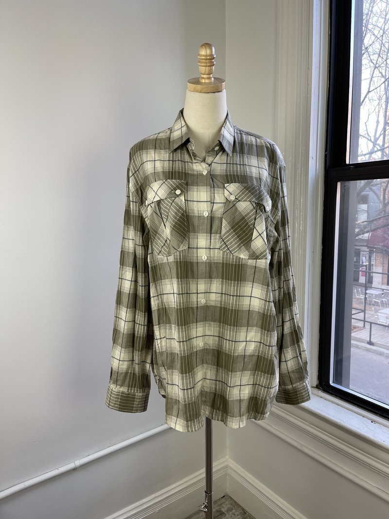 green plaid button up