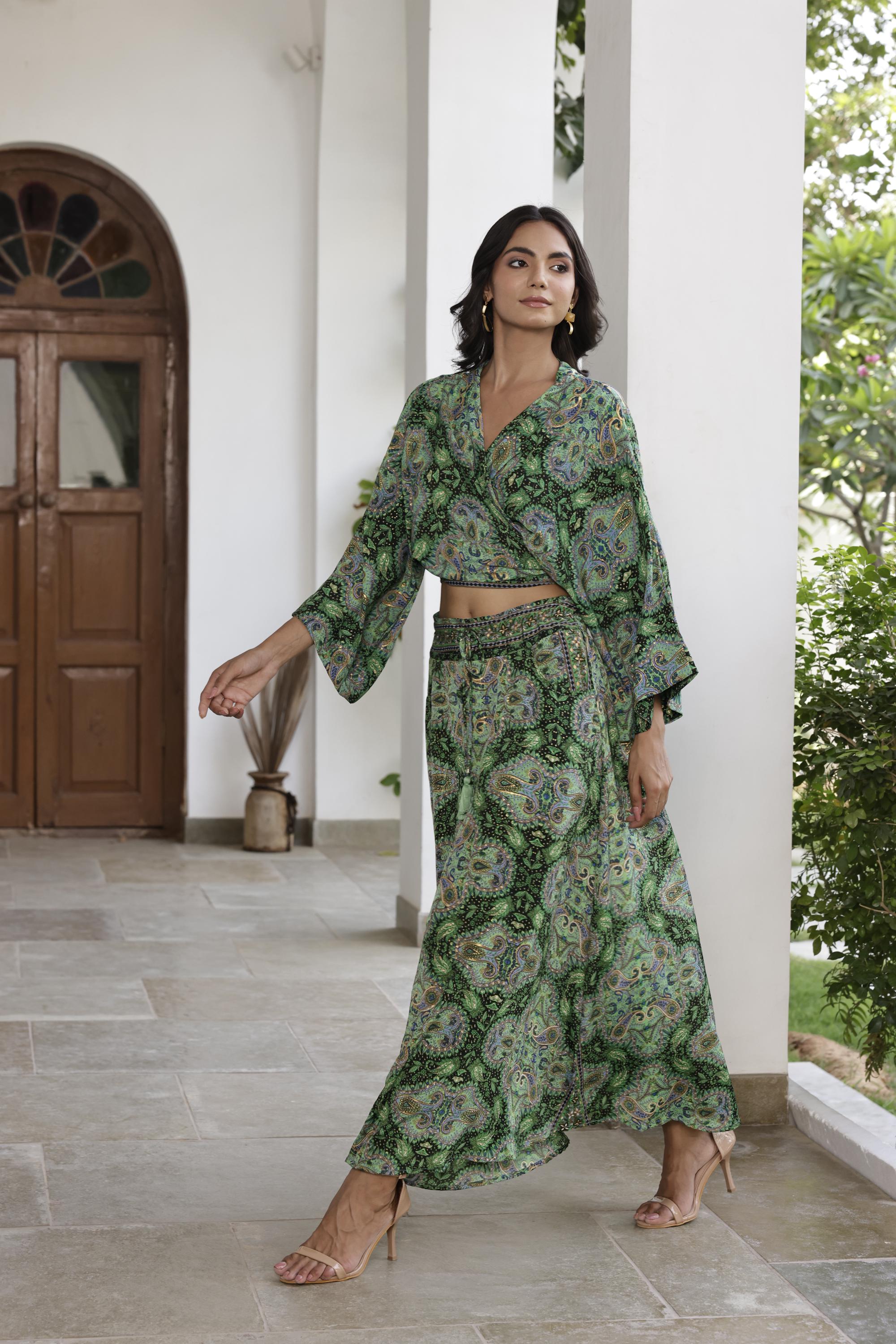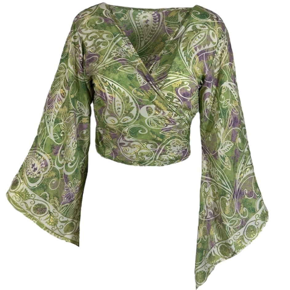 green silk wrap top