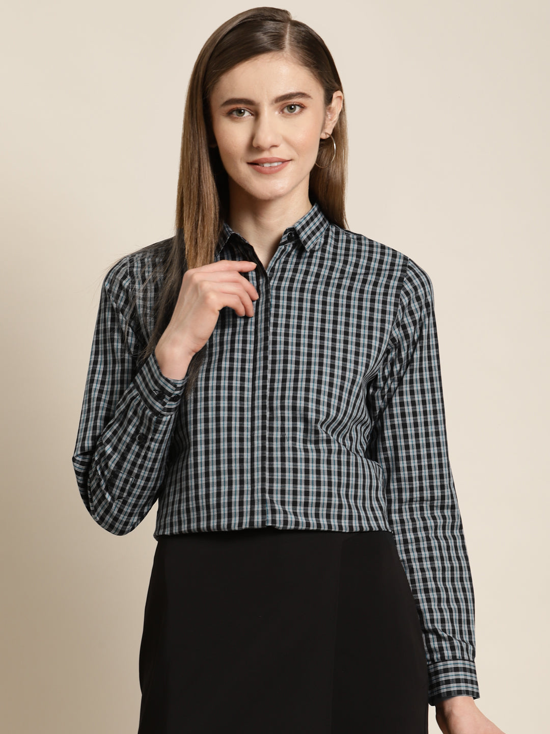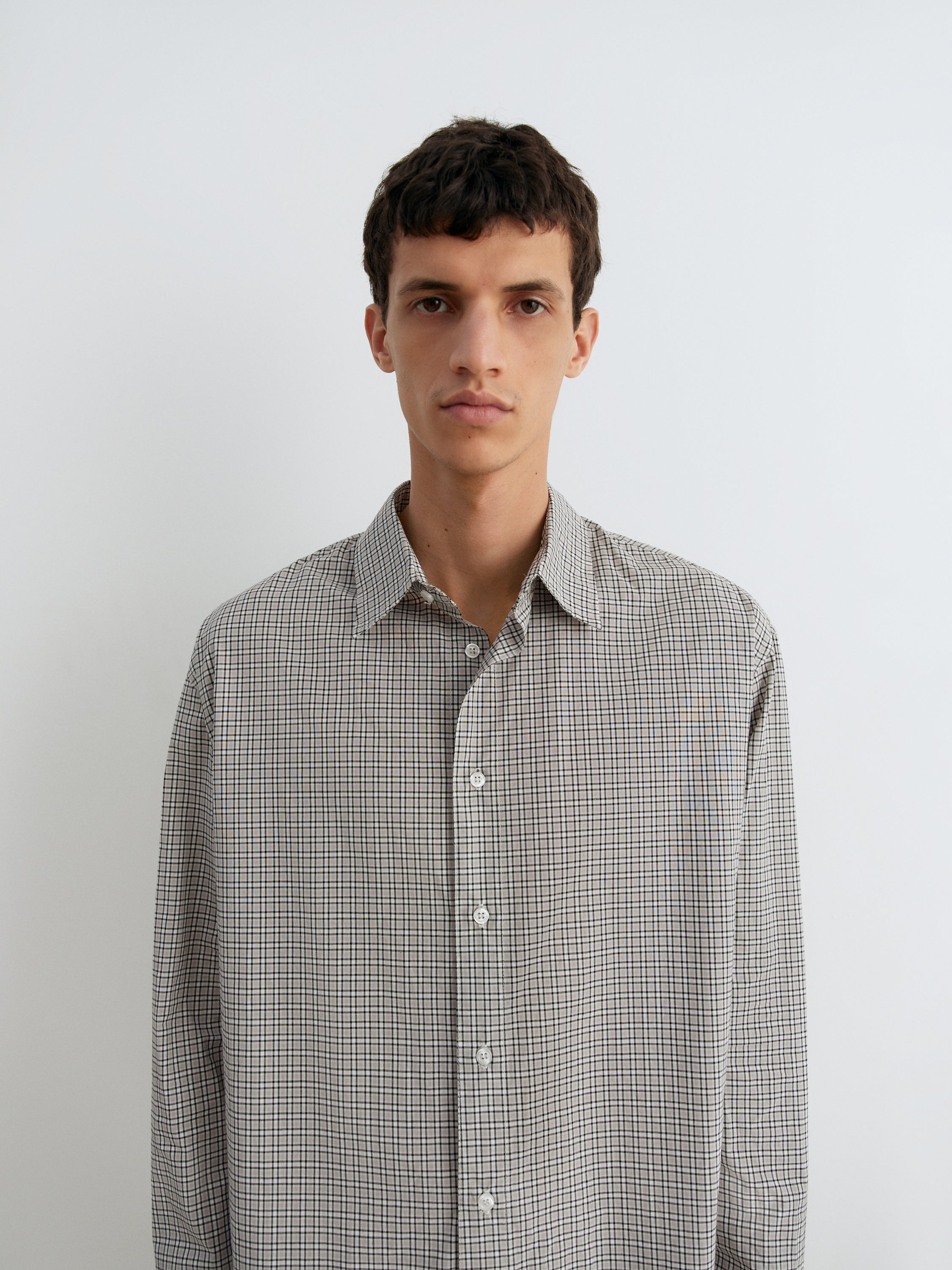 grey checkered shirt