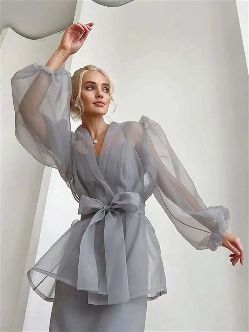 grey chiffon blouse