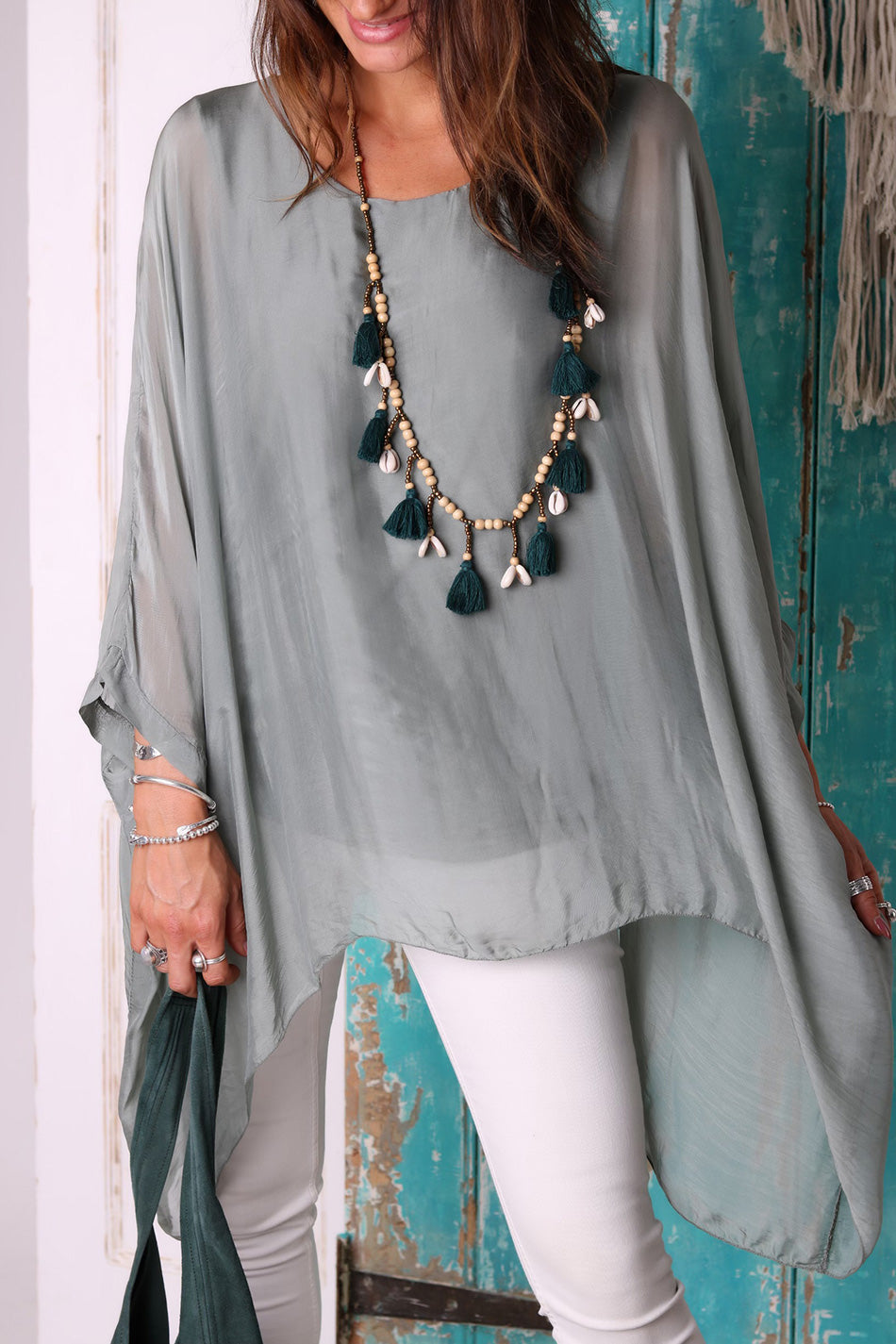 grey silk top