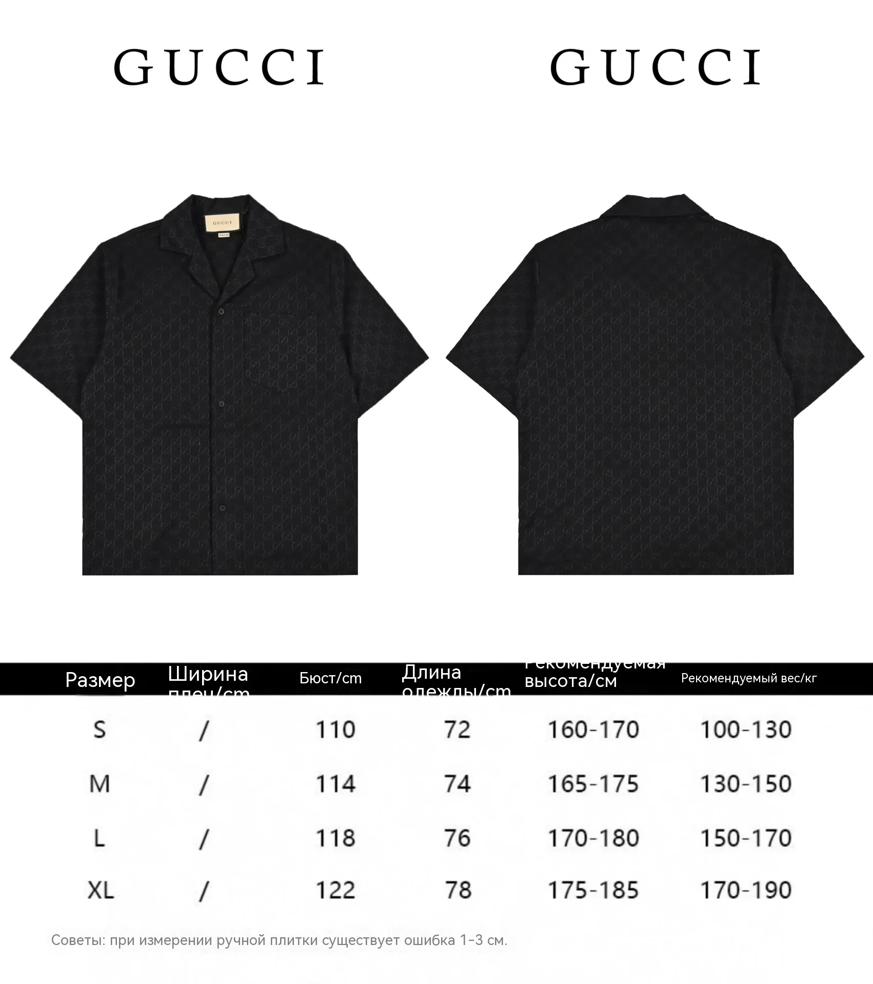 gucci shirt sizing
