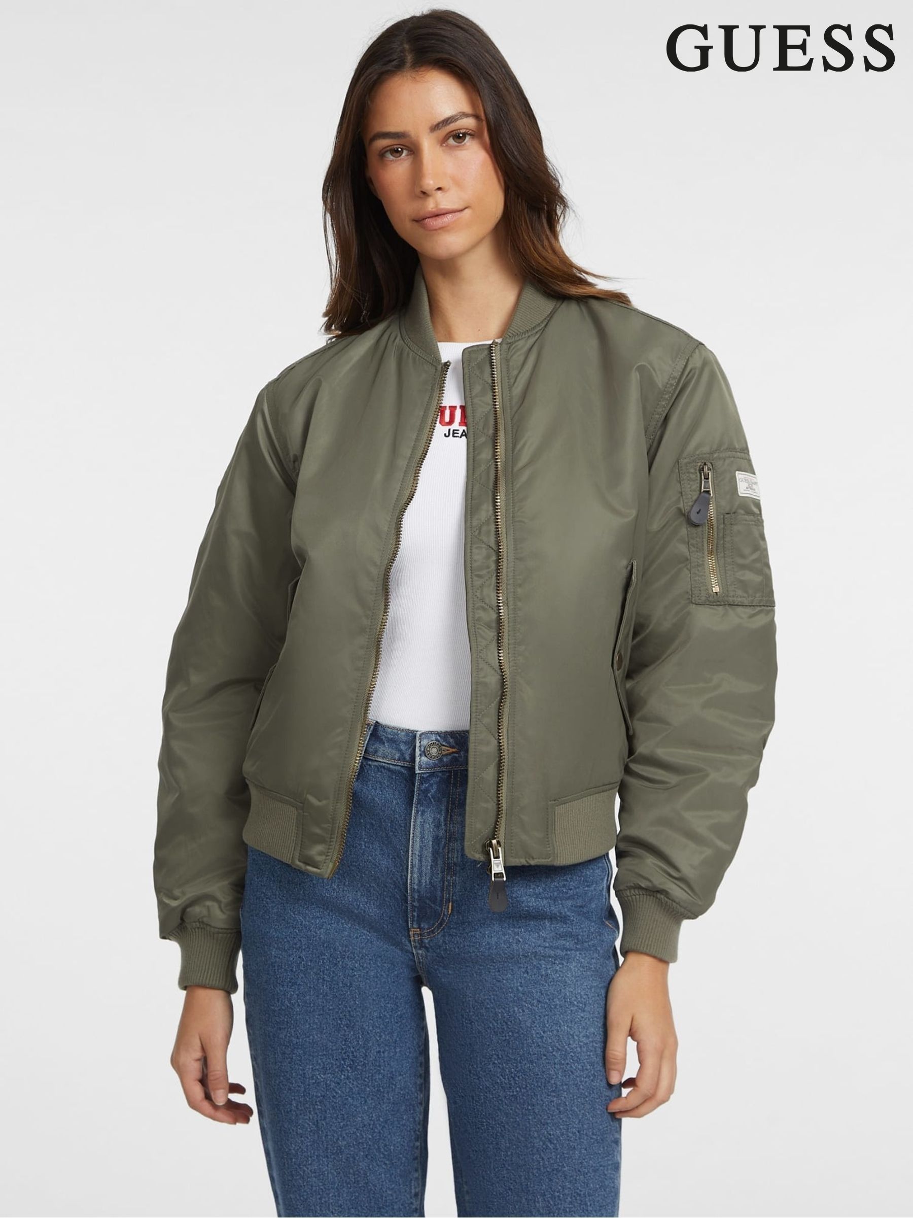 guess bomber jacket green