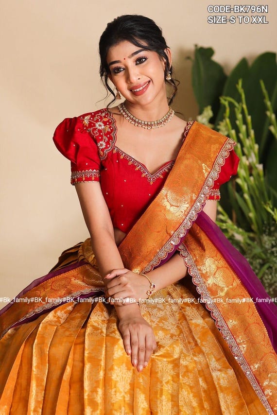 half saree with long blouse