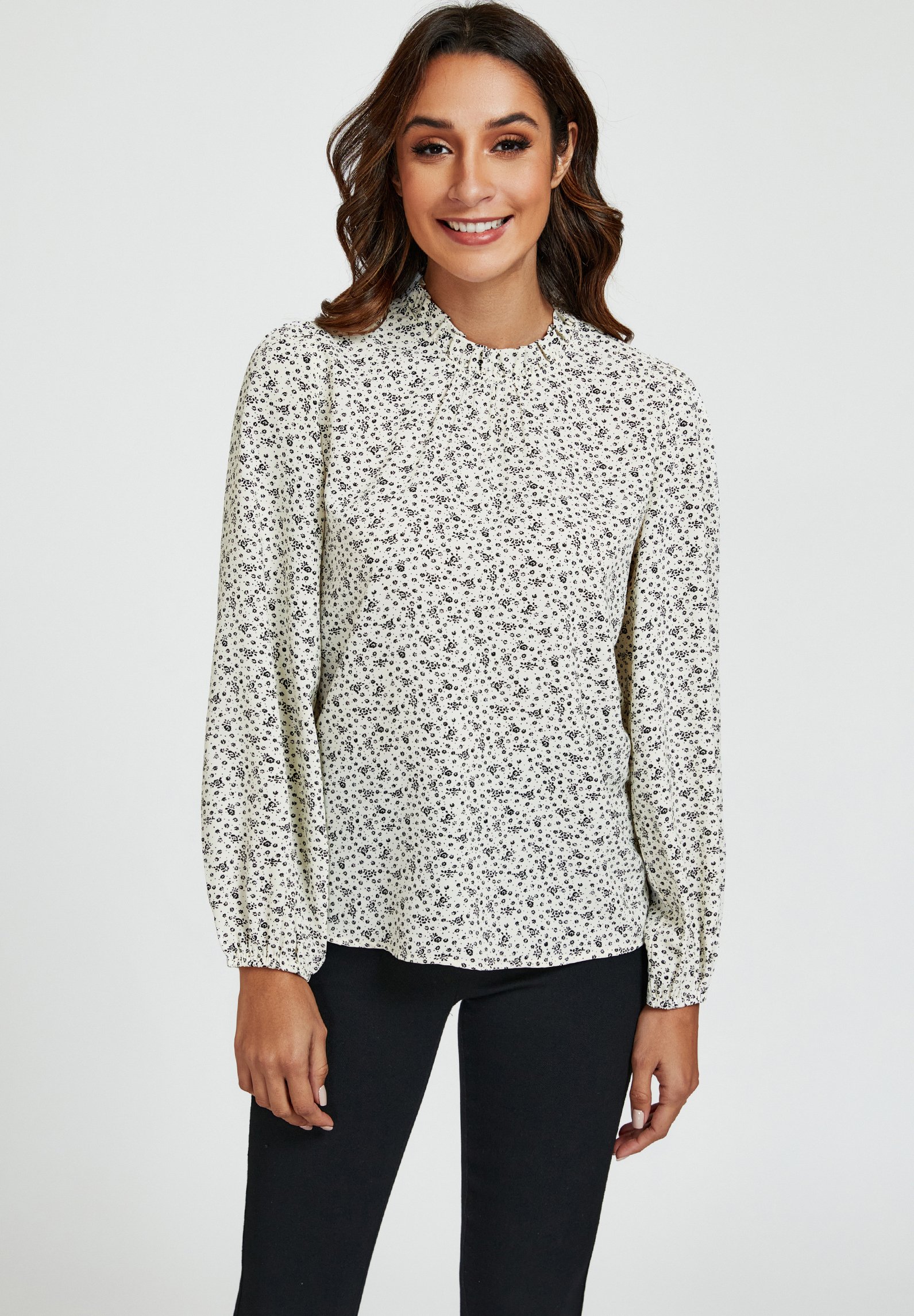 high neck blouse white