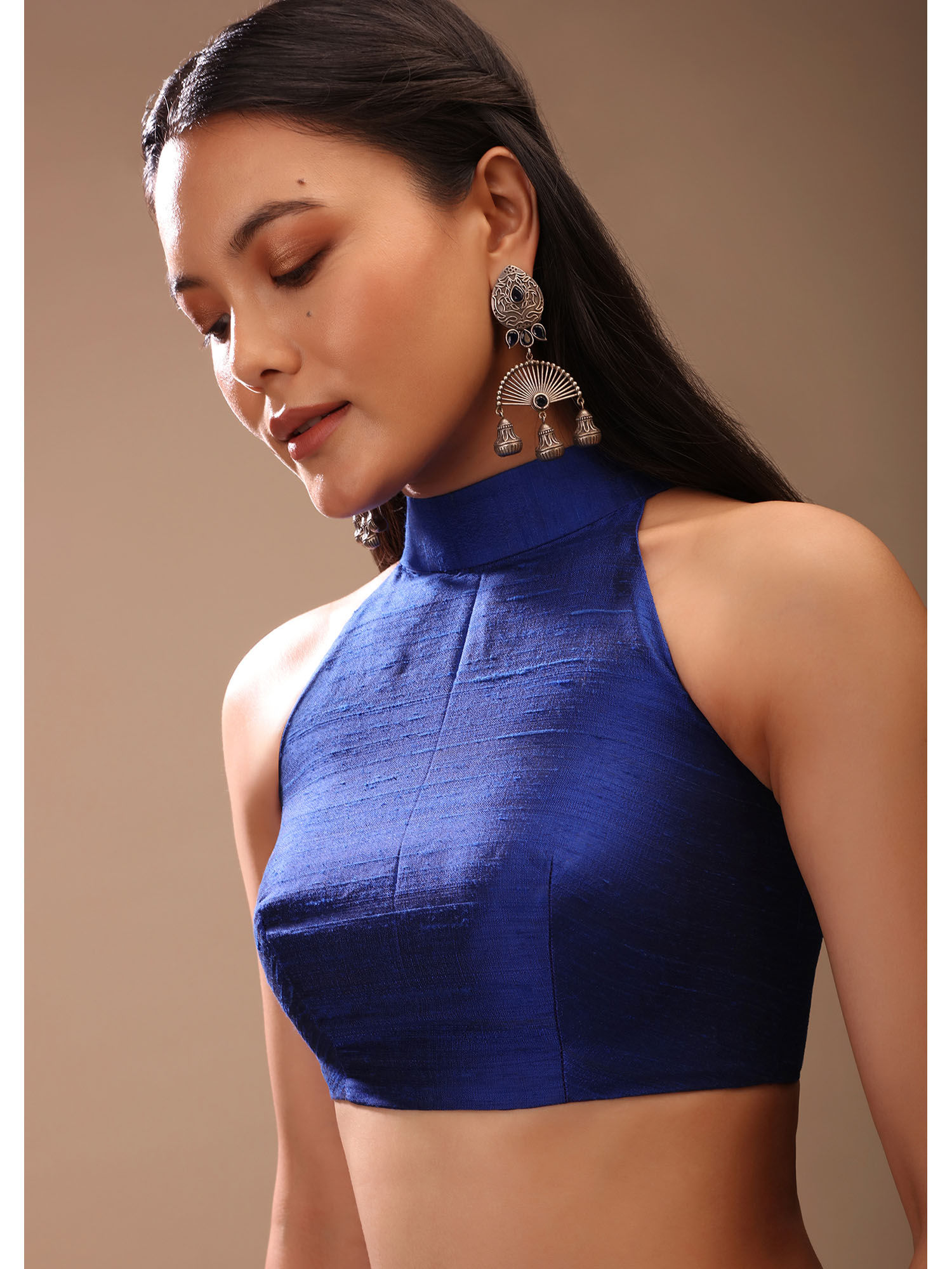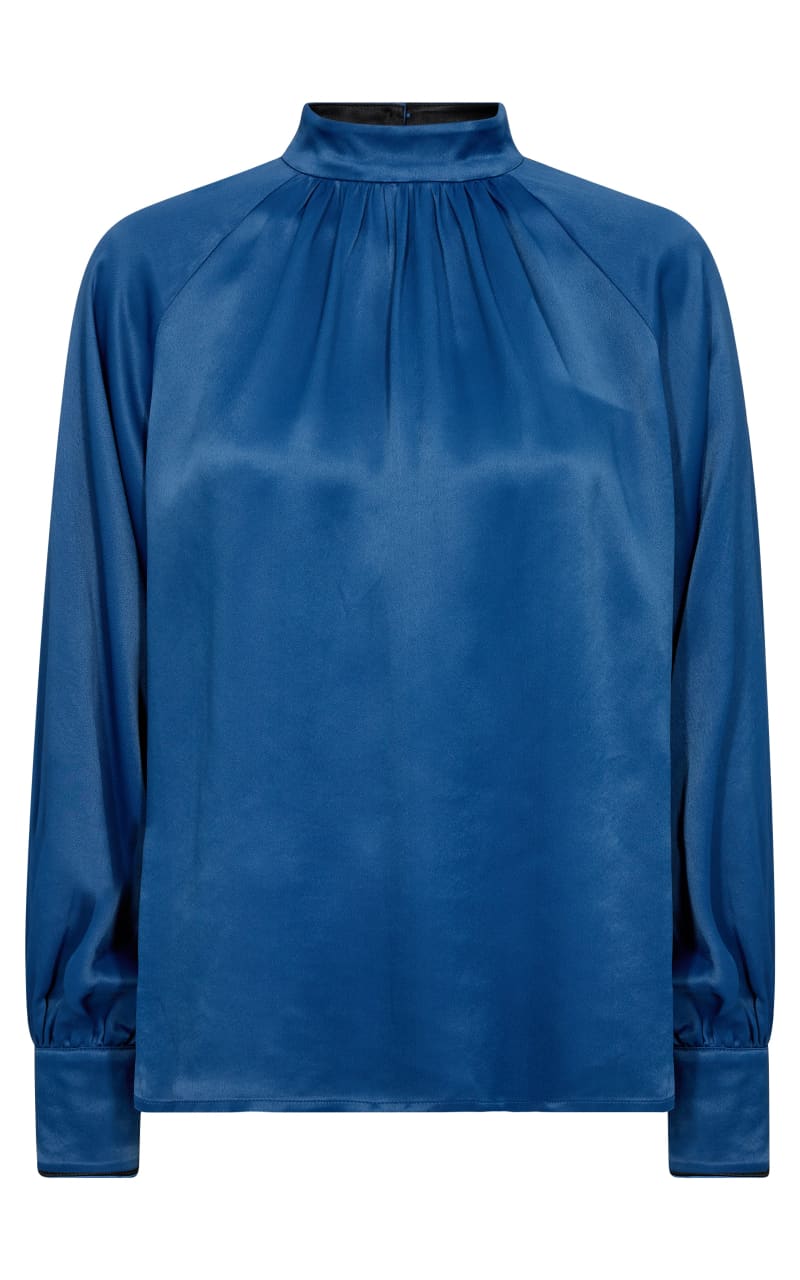 high neck blue blouse