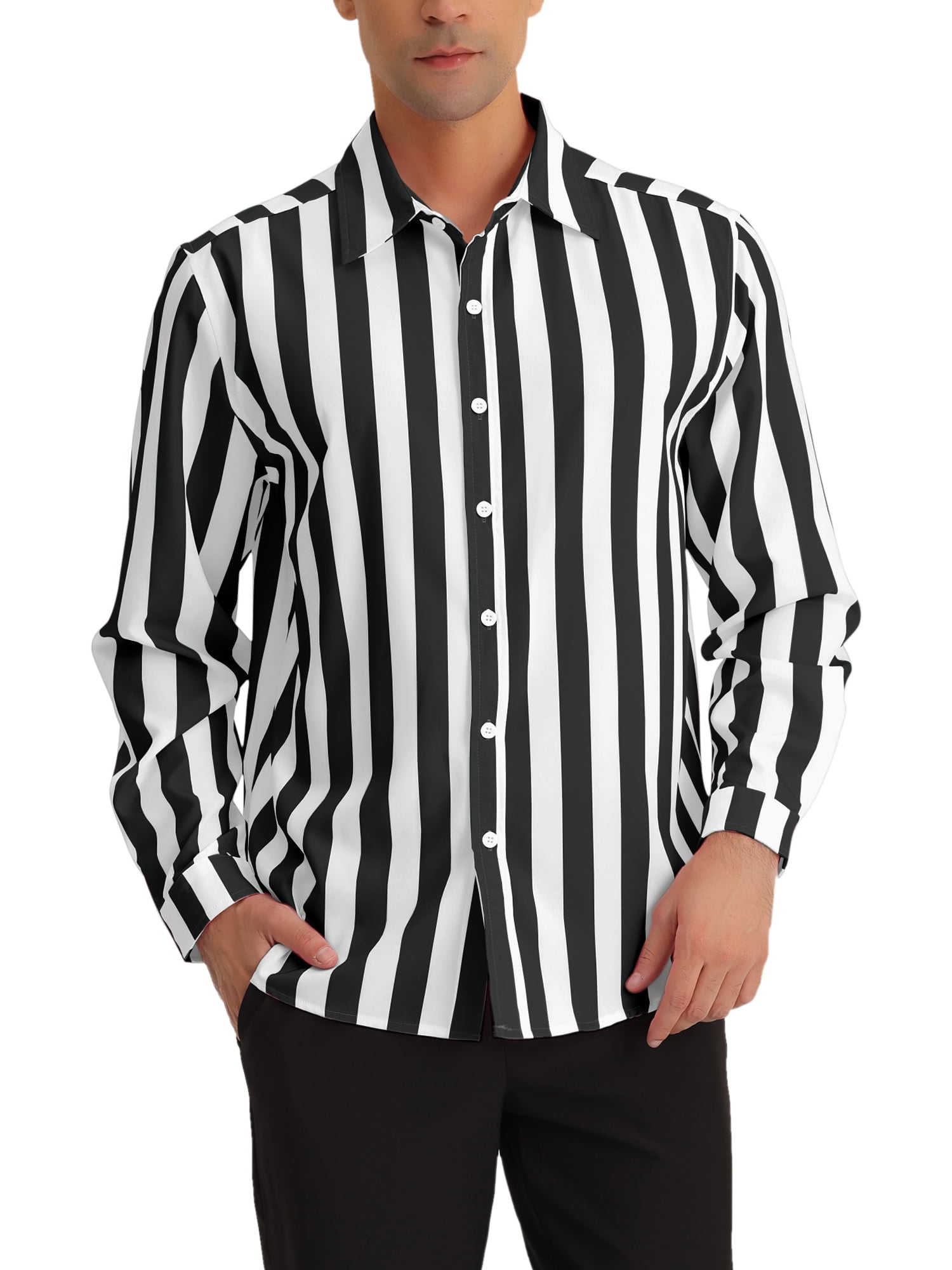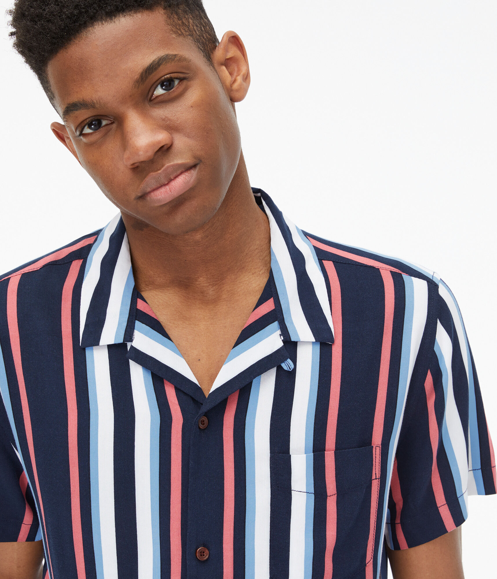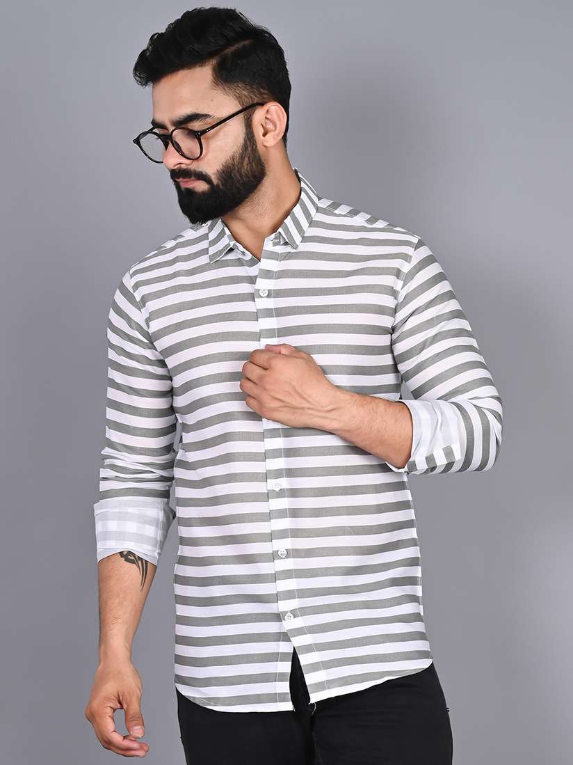 horizontal striped button up shirt