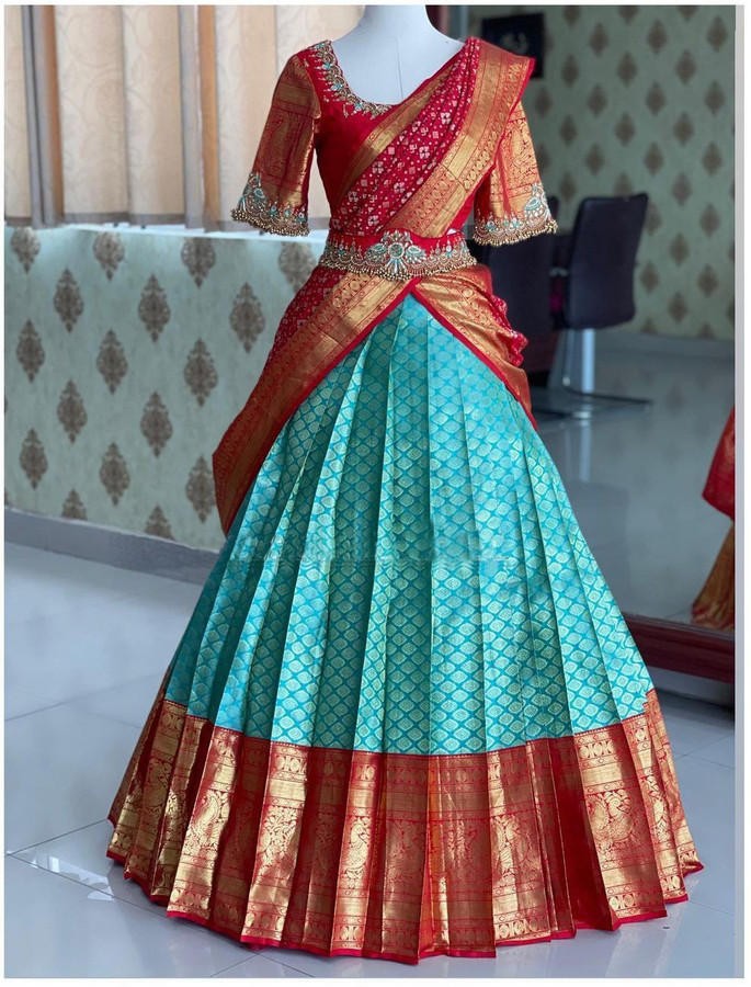 ikkat half saree blouse designs