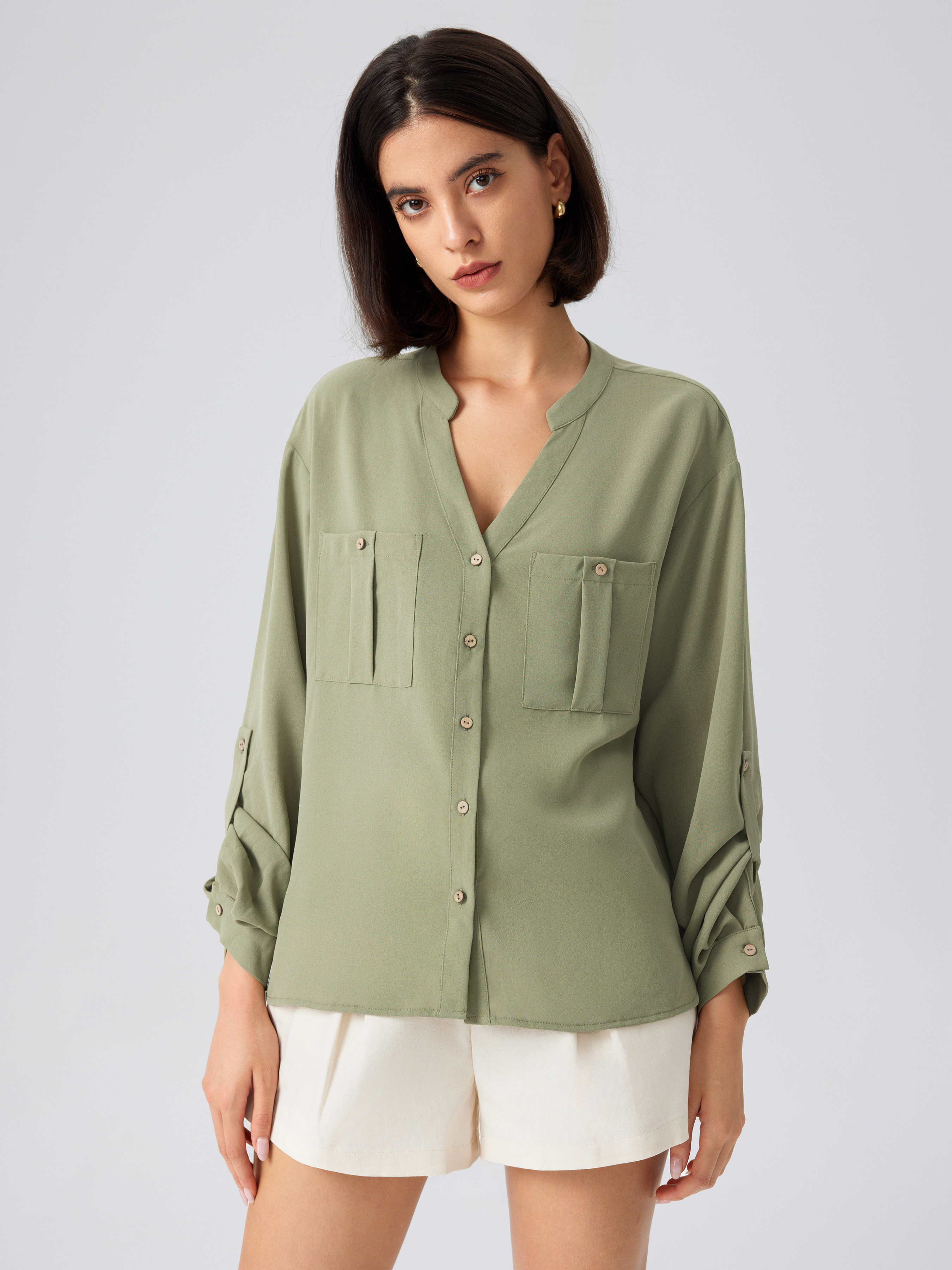 khaki green blouse