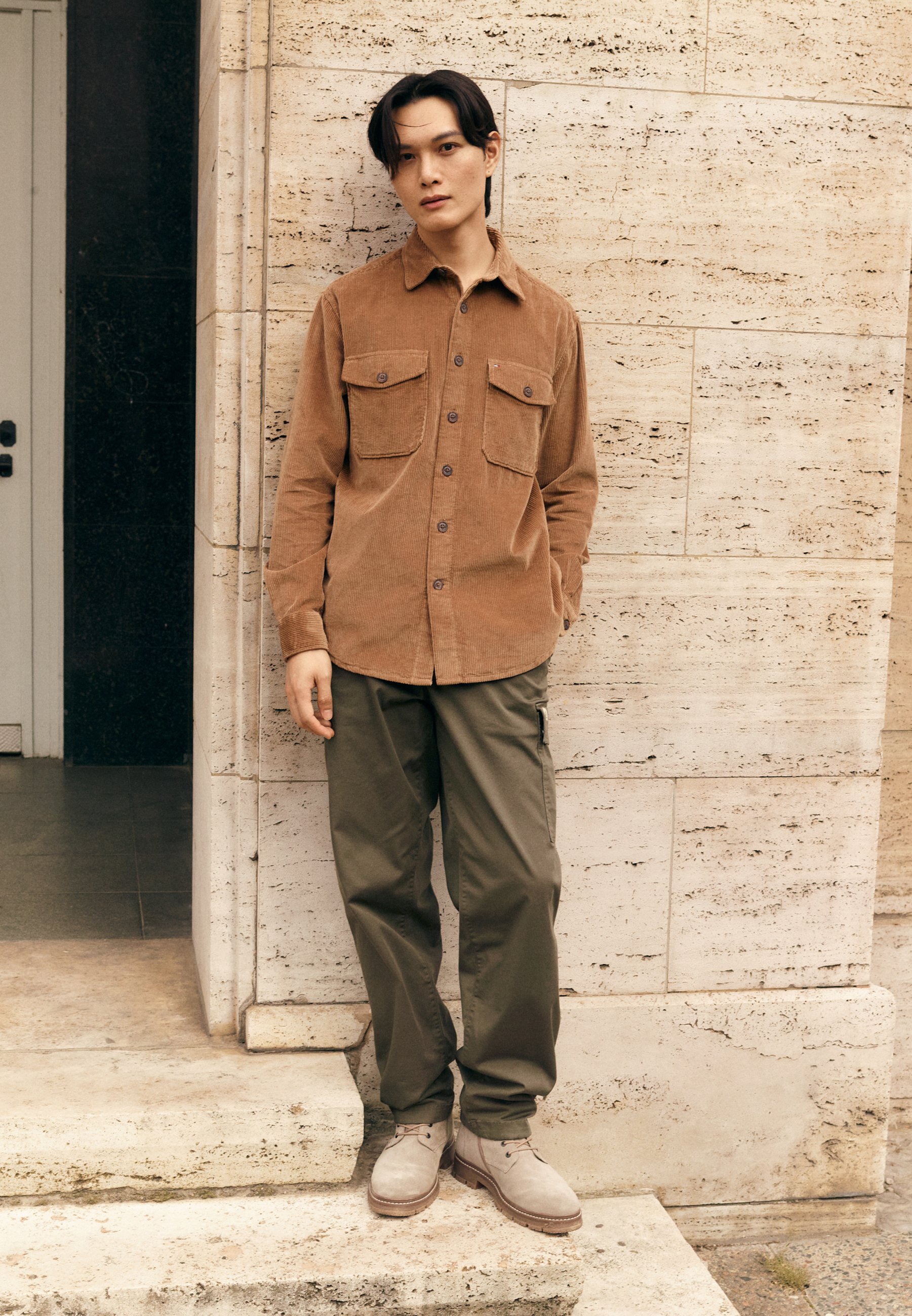 khaki over shirt