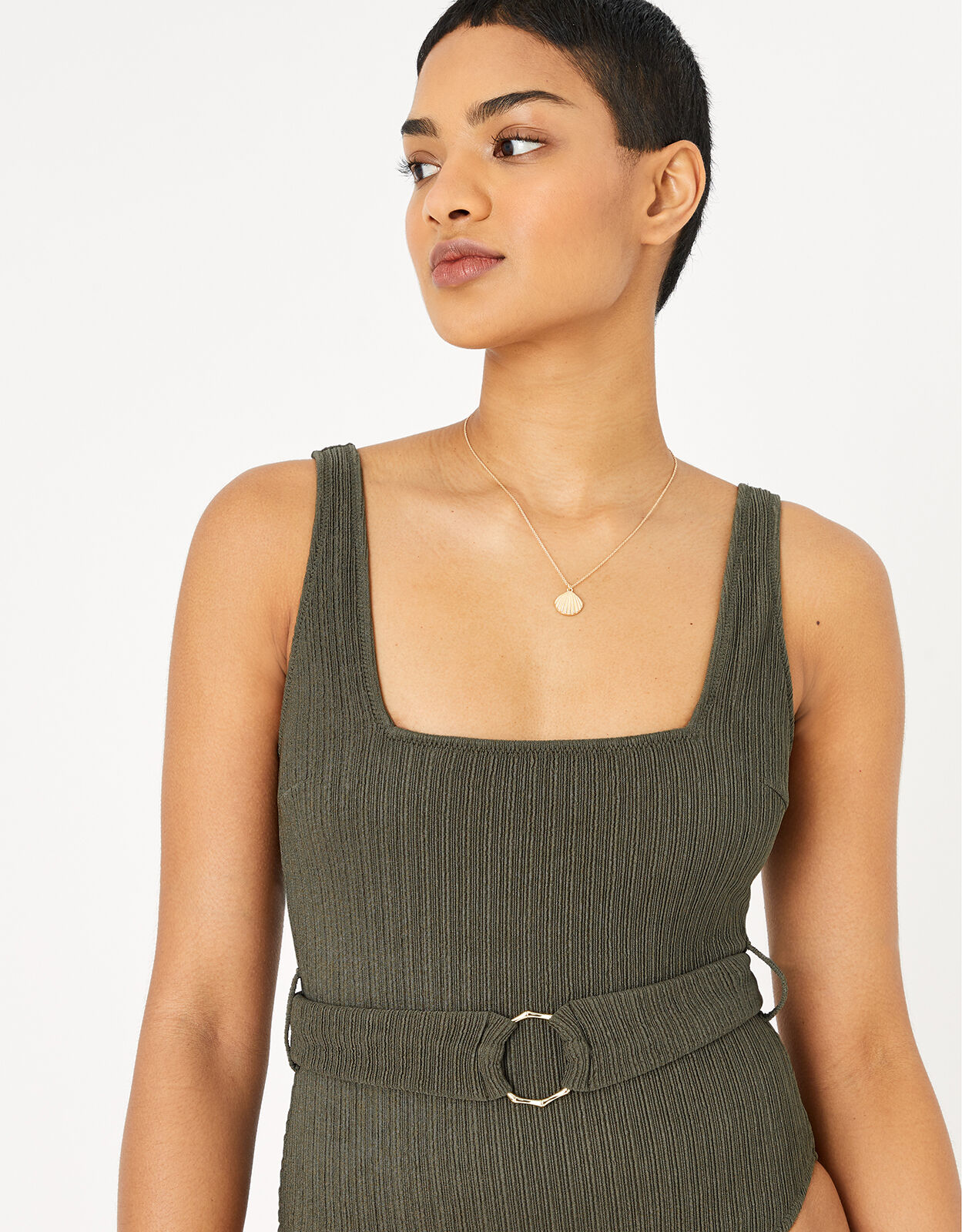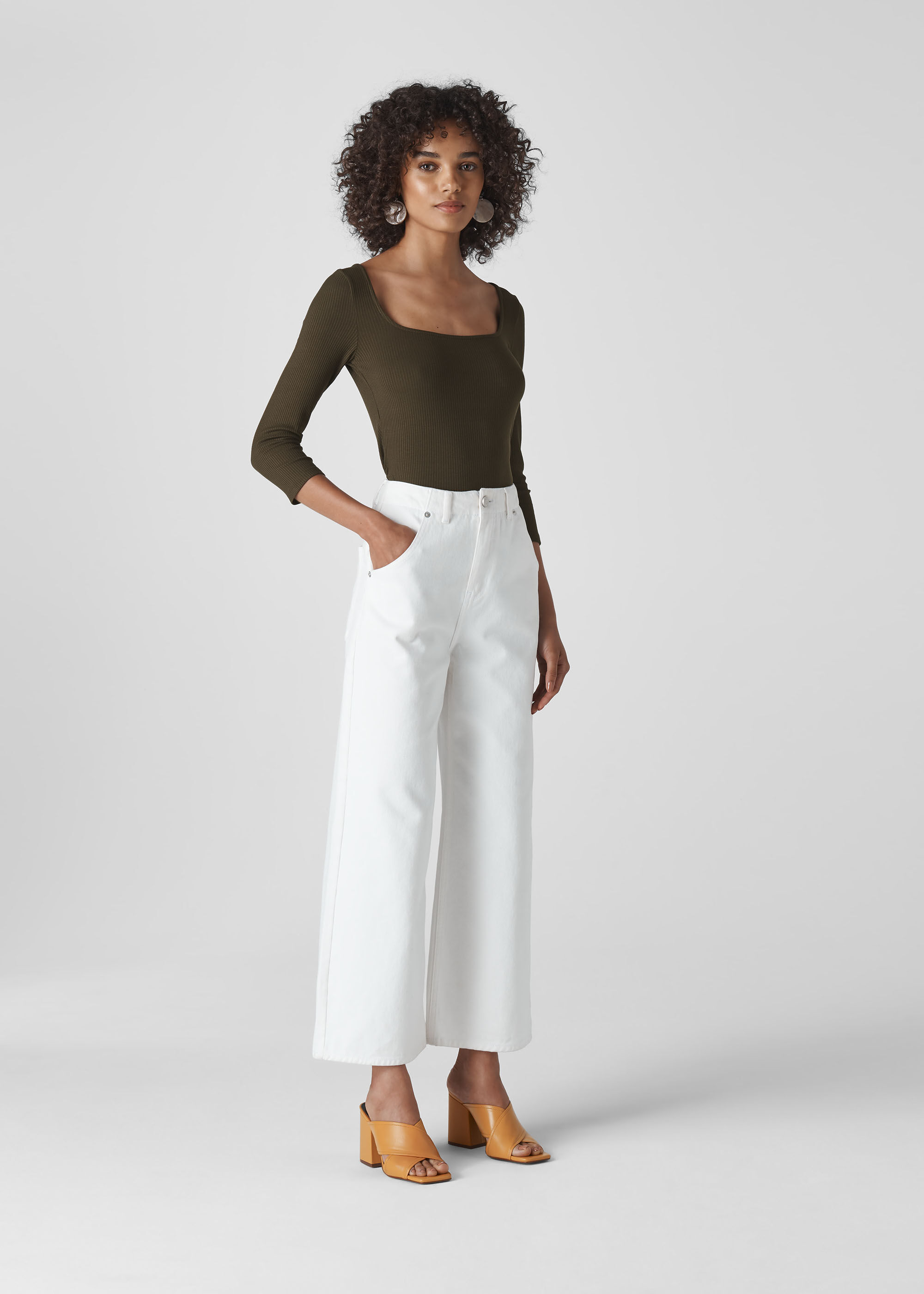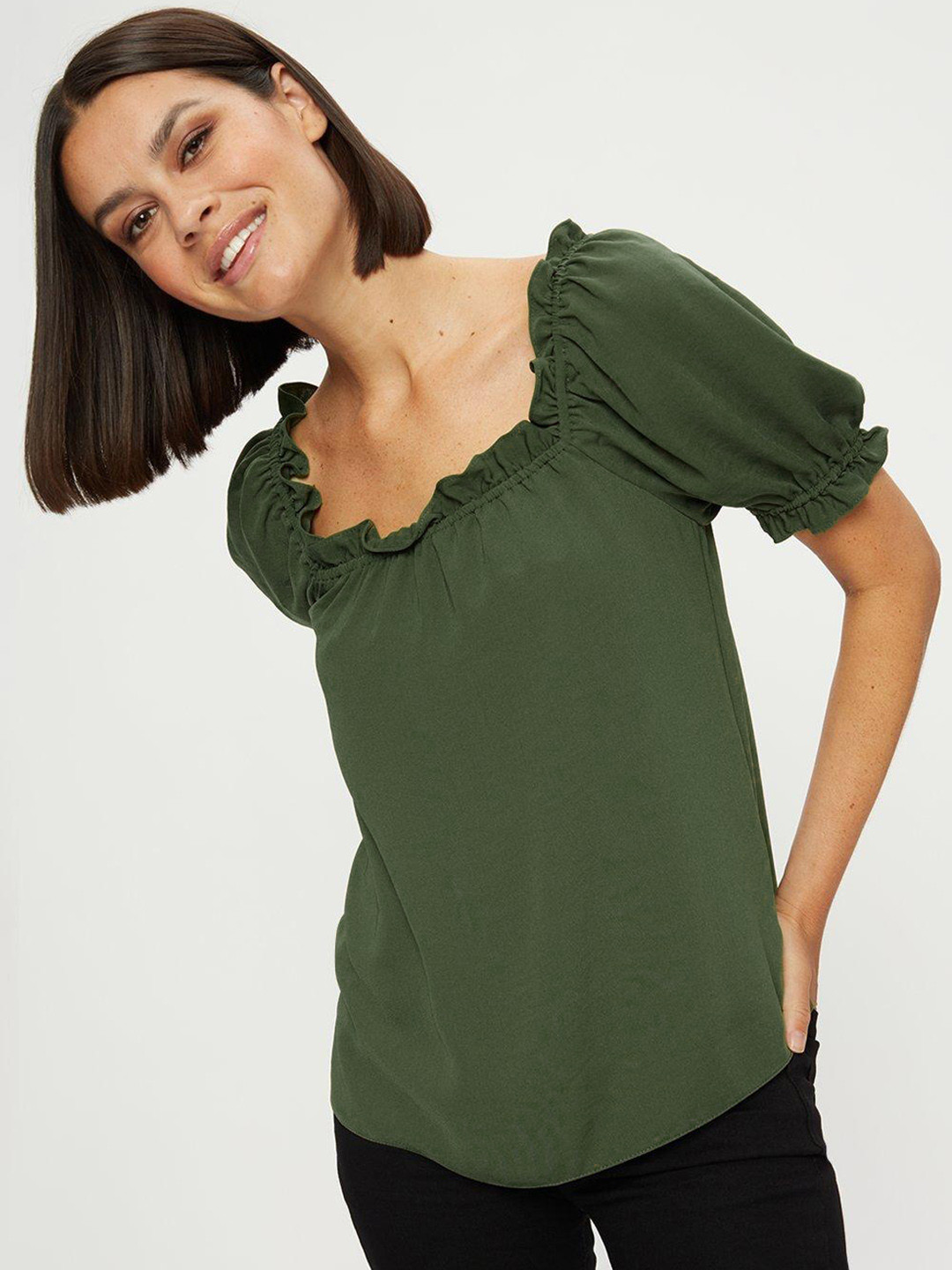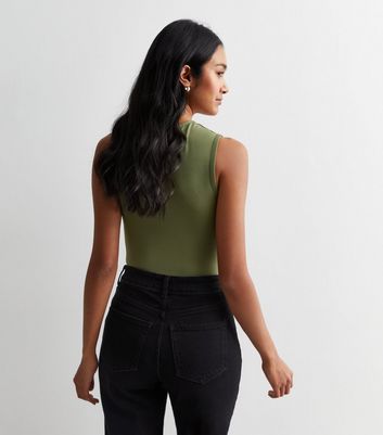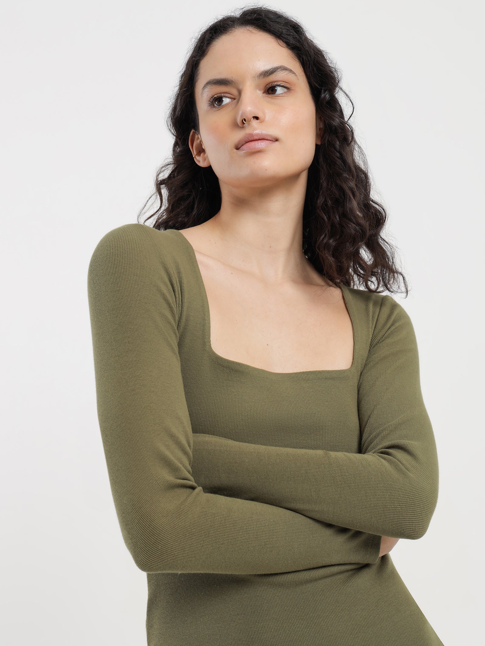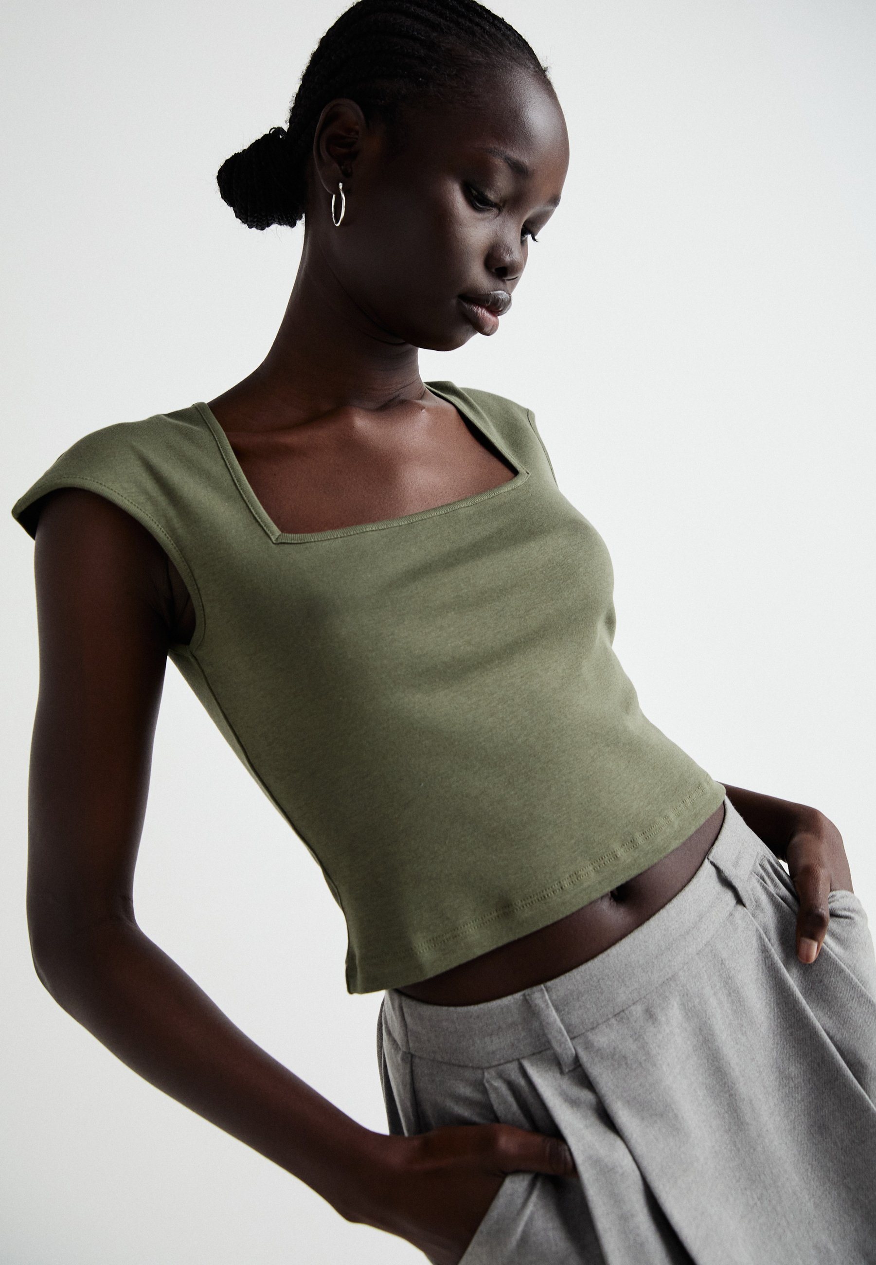 khaki square neck top