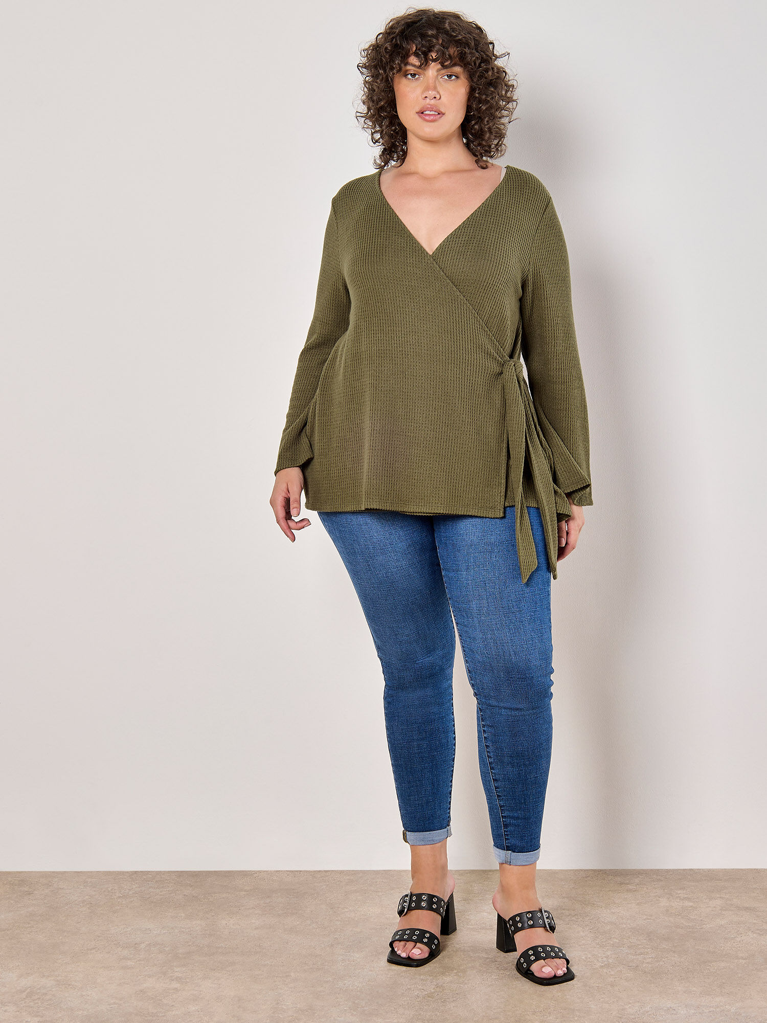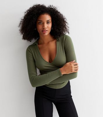 khaki wrap top