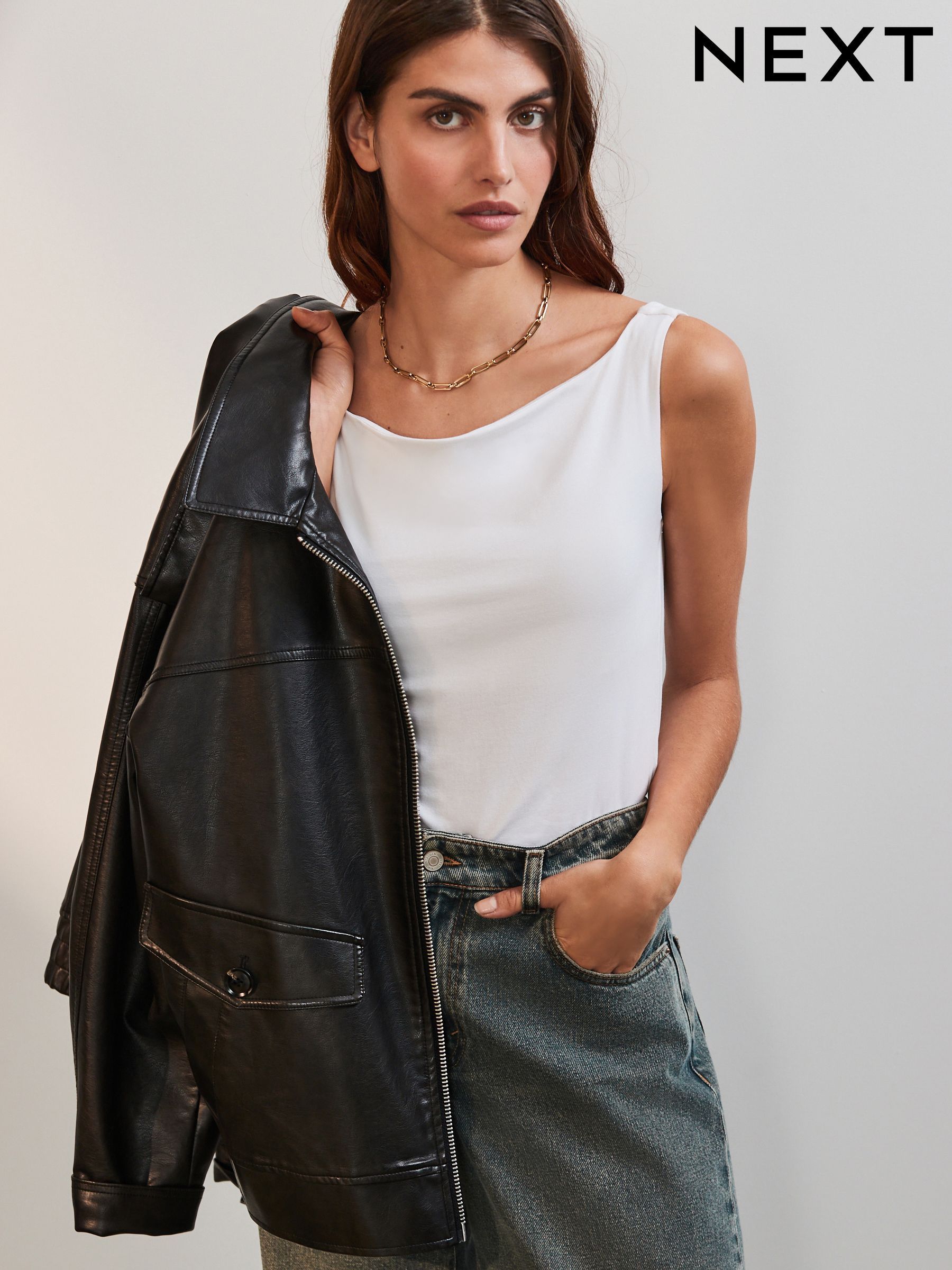 leather bardot top