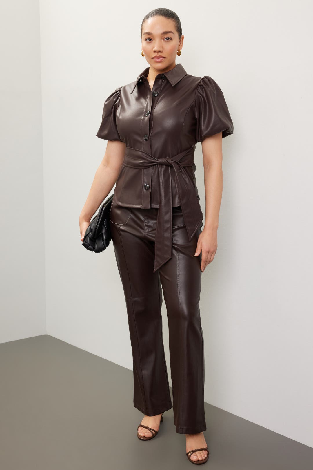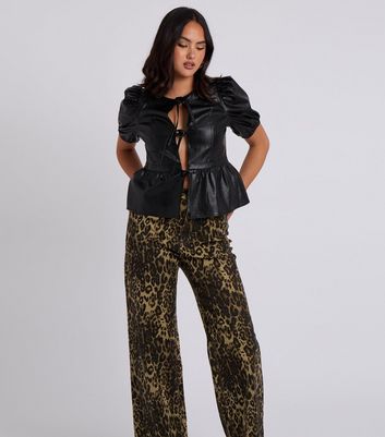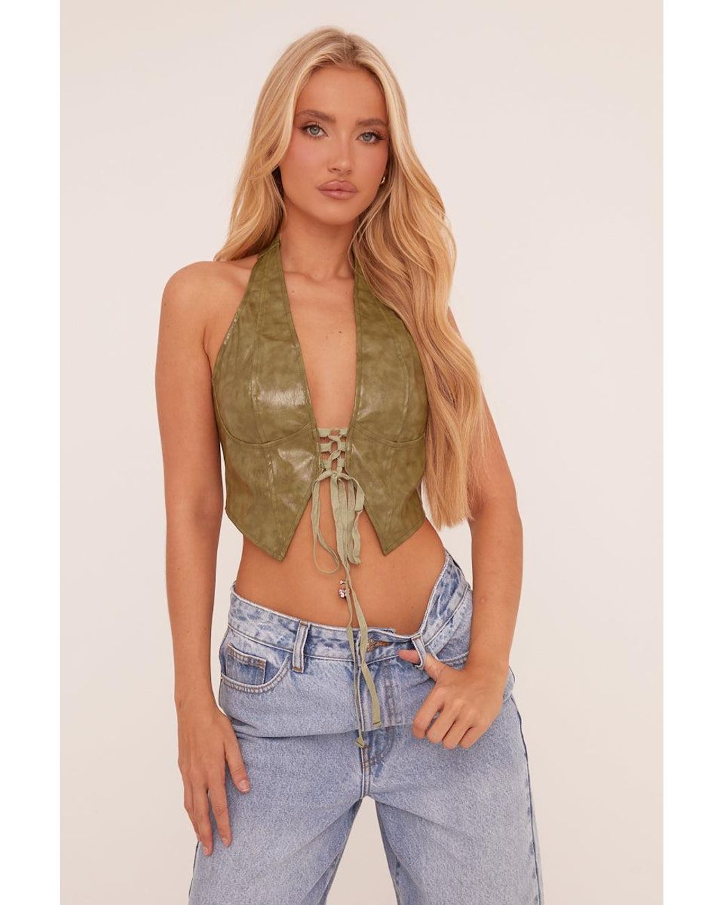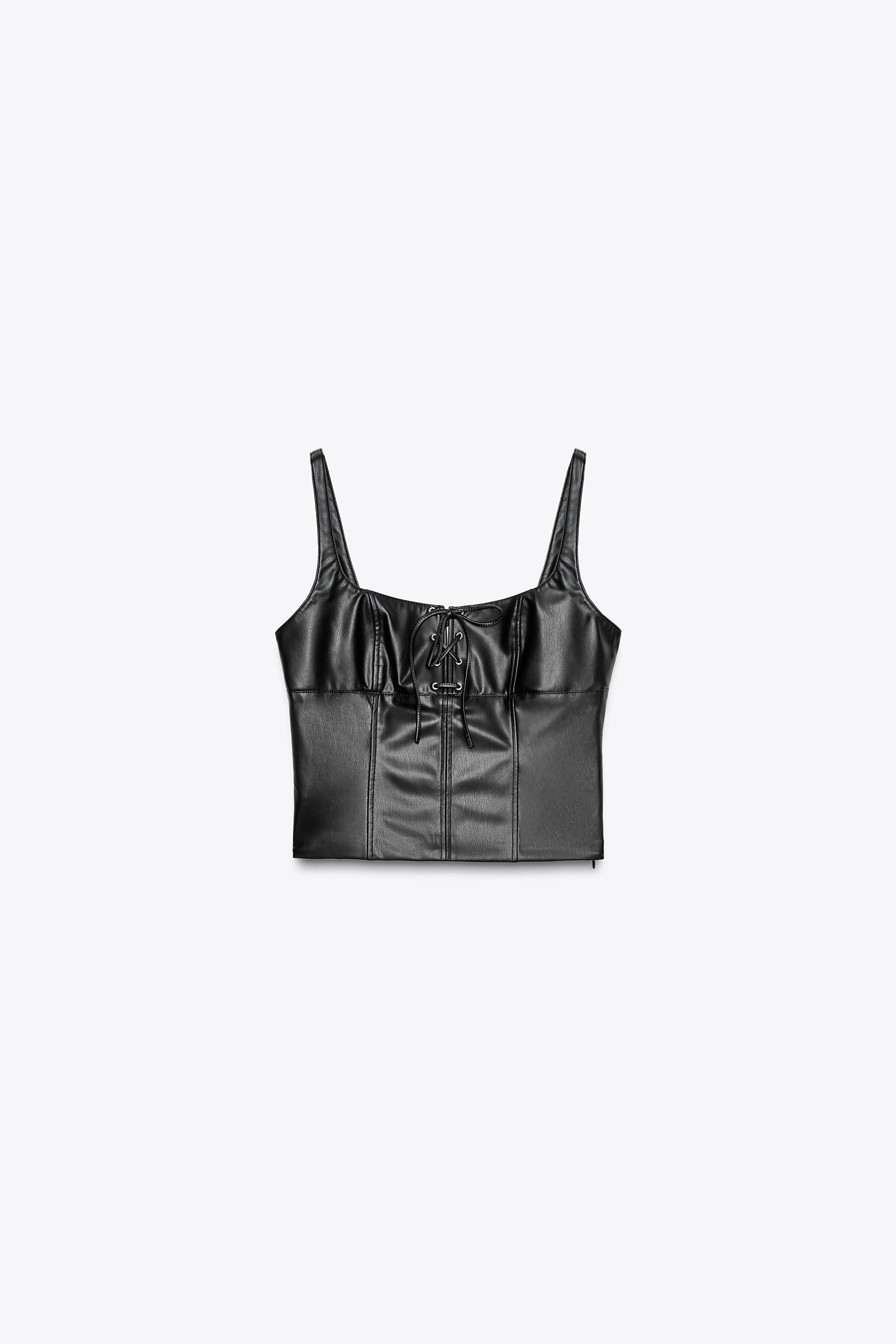 leather tie front top