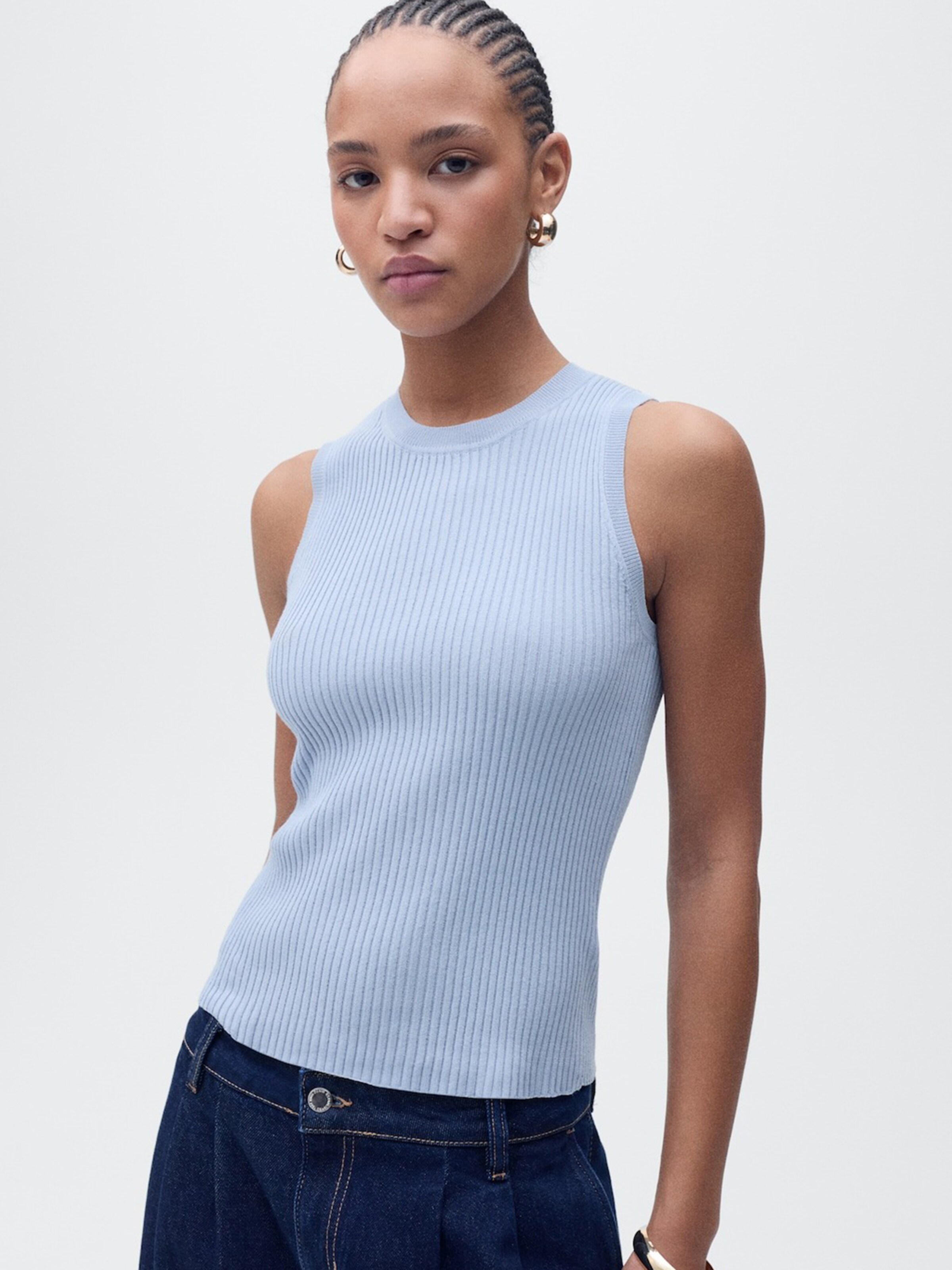 light blue knitted top