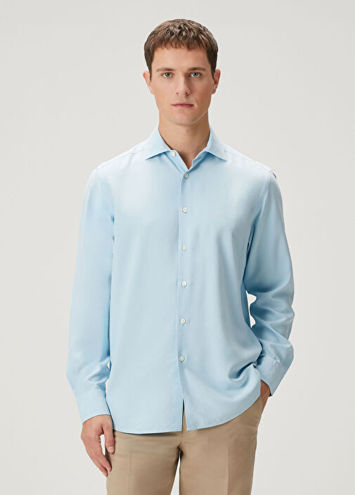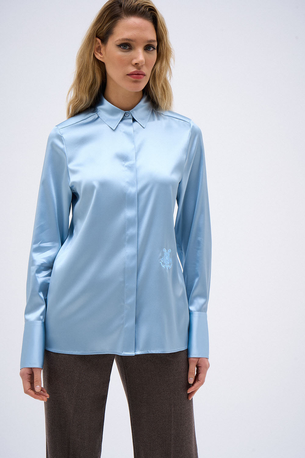 light blue silk top