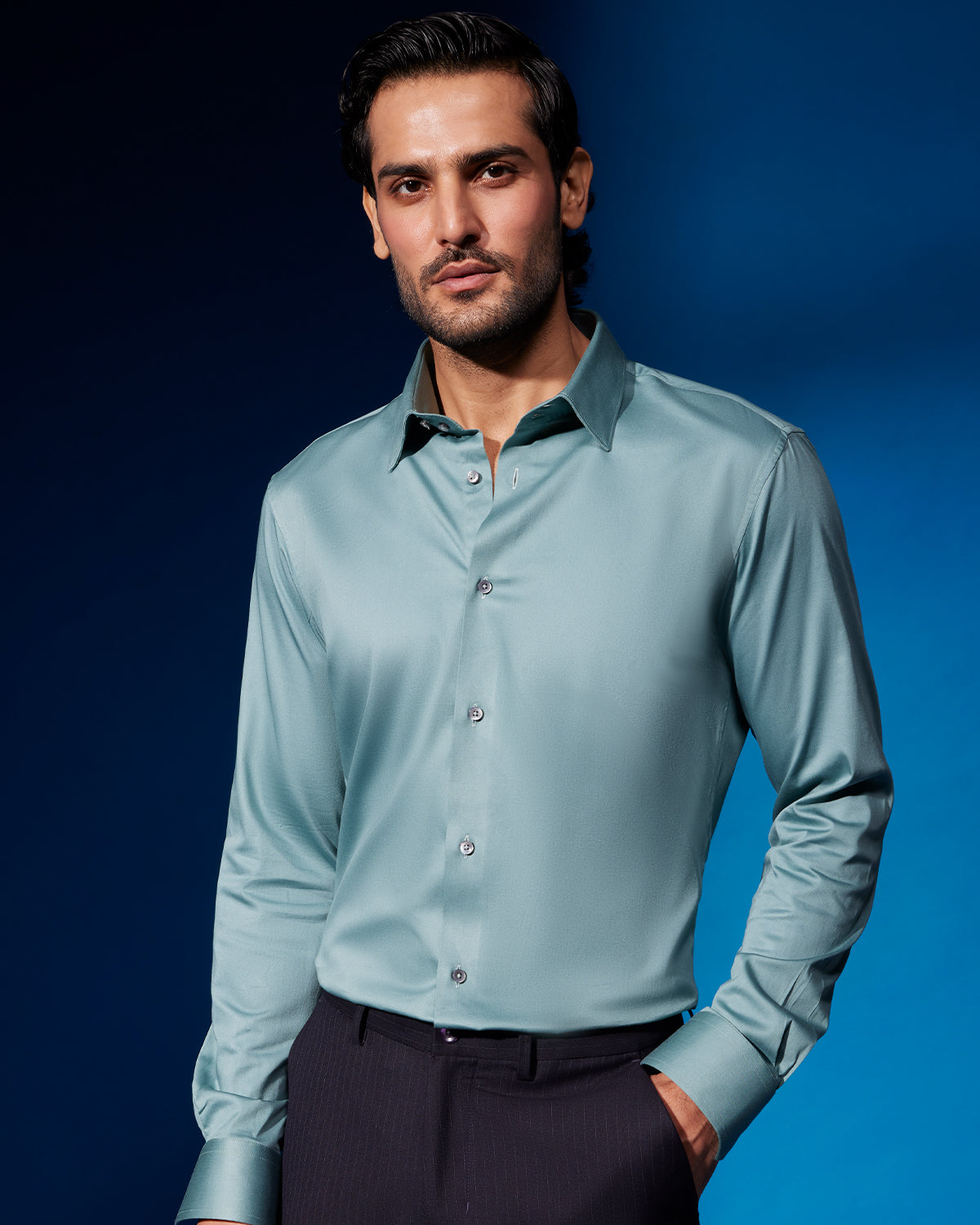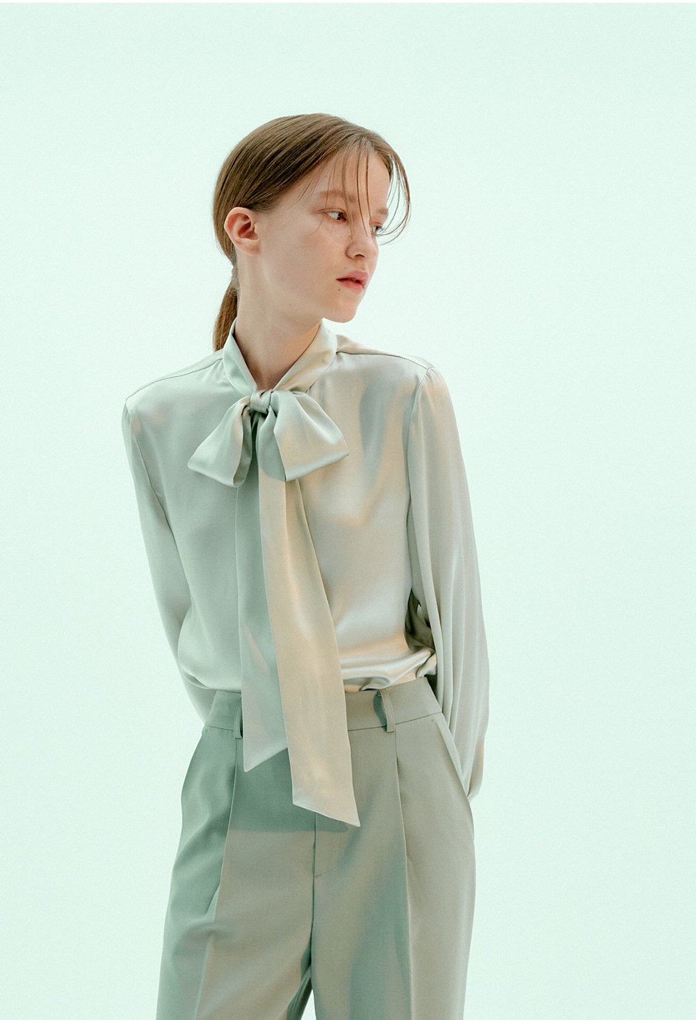 light green satin blouse