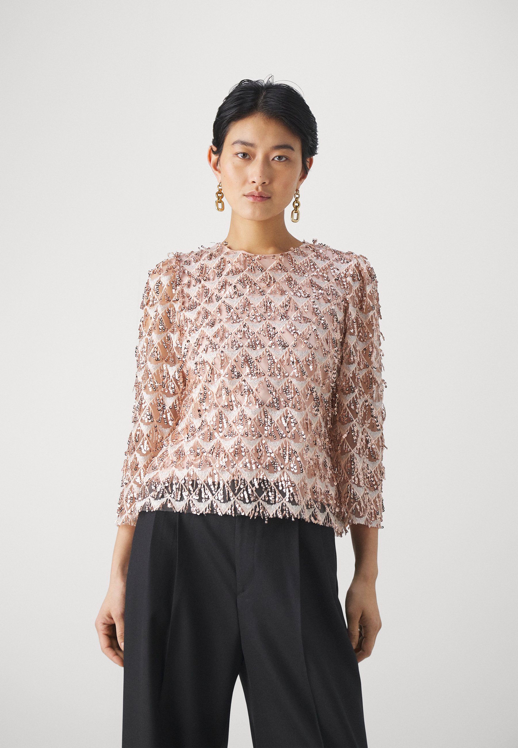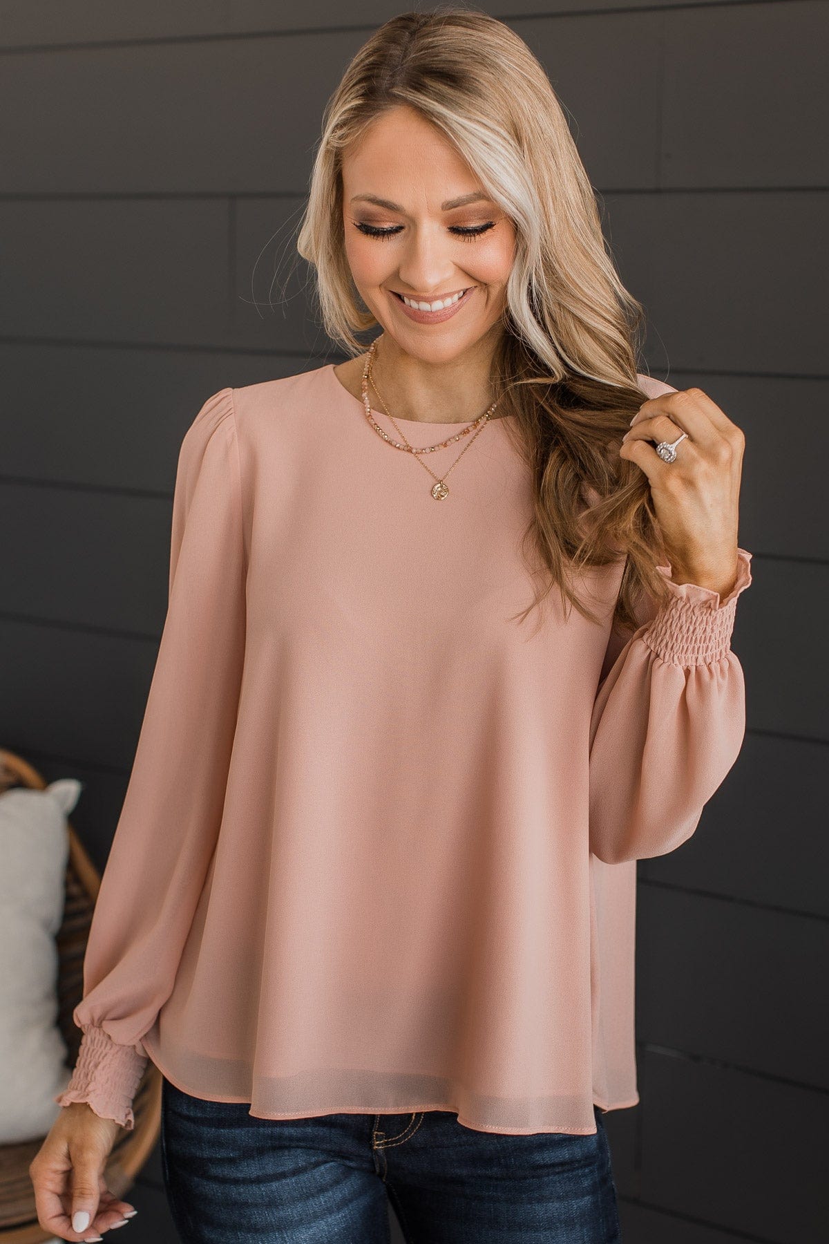 light peach blouse