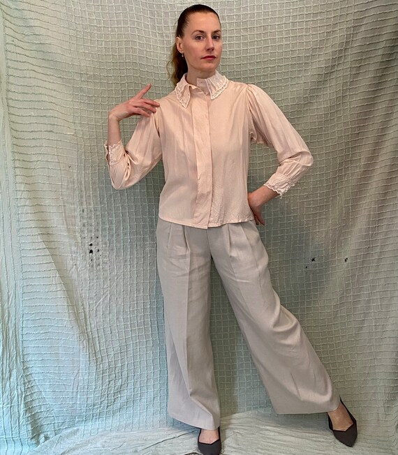 light pink blouse outfit