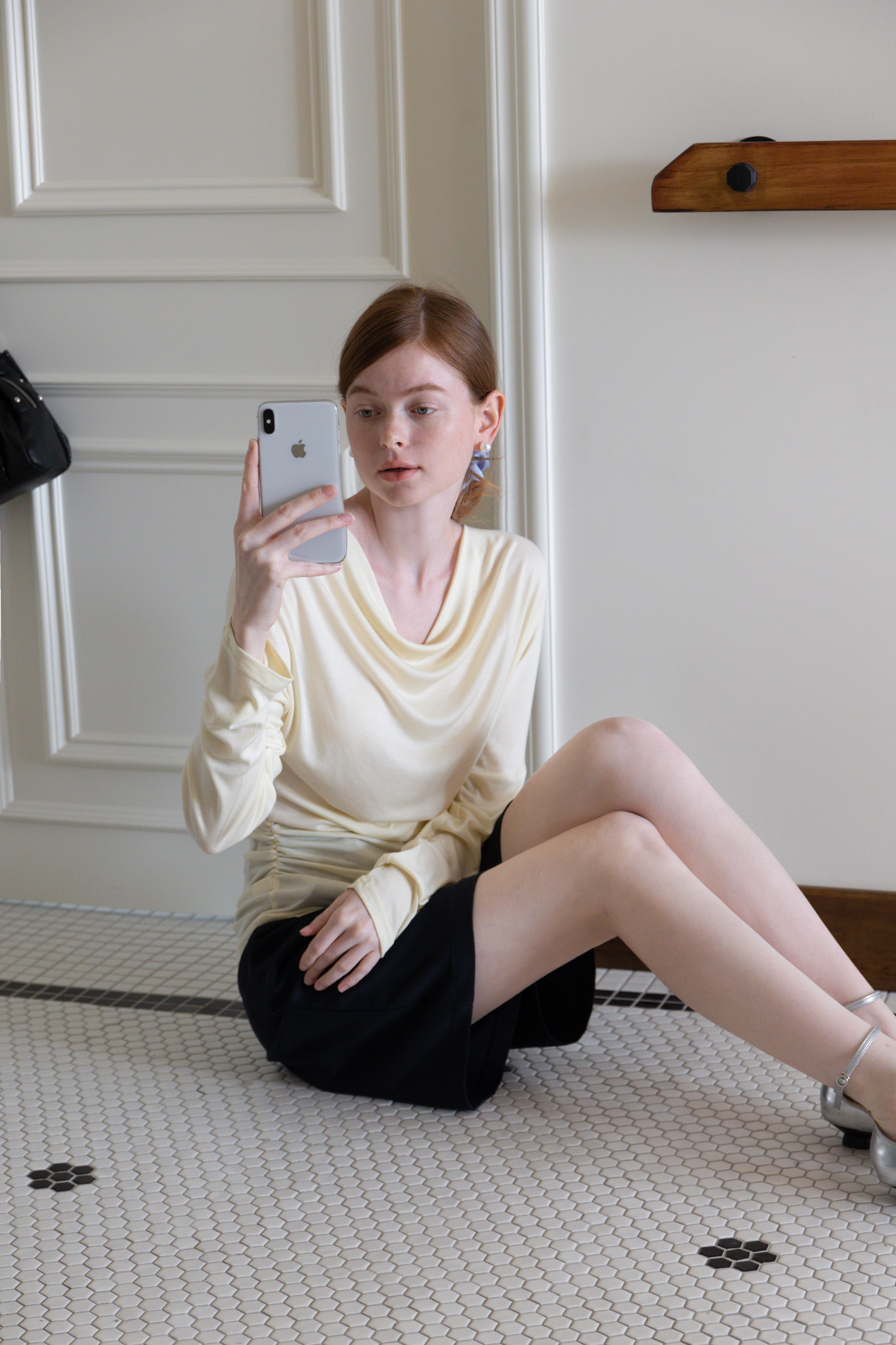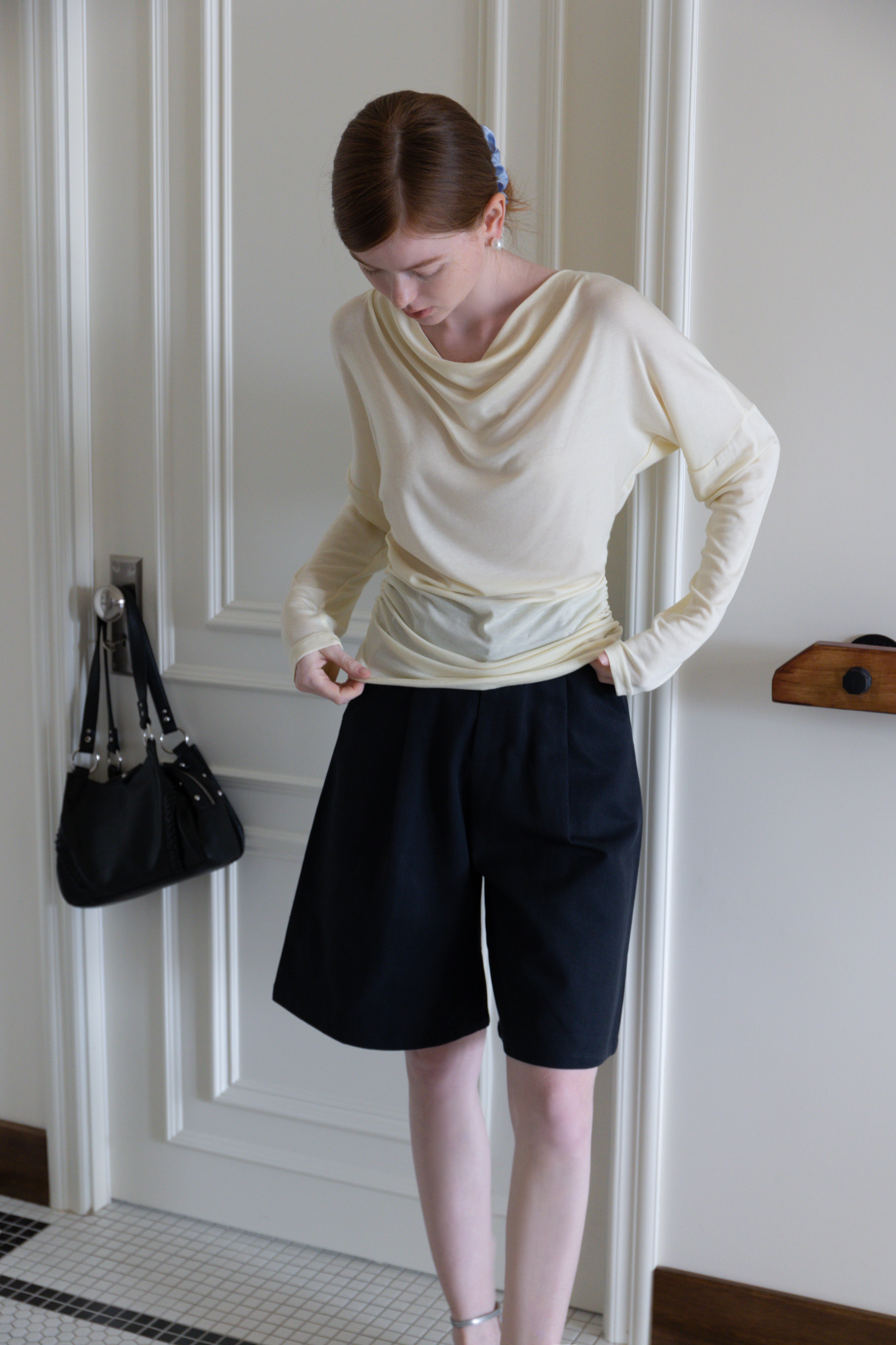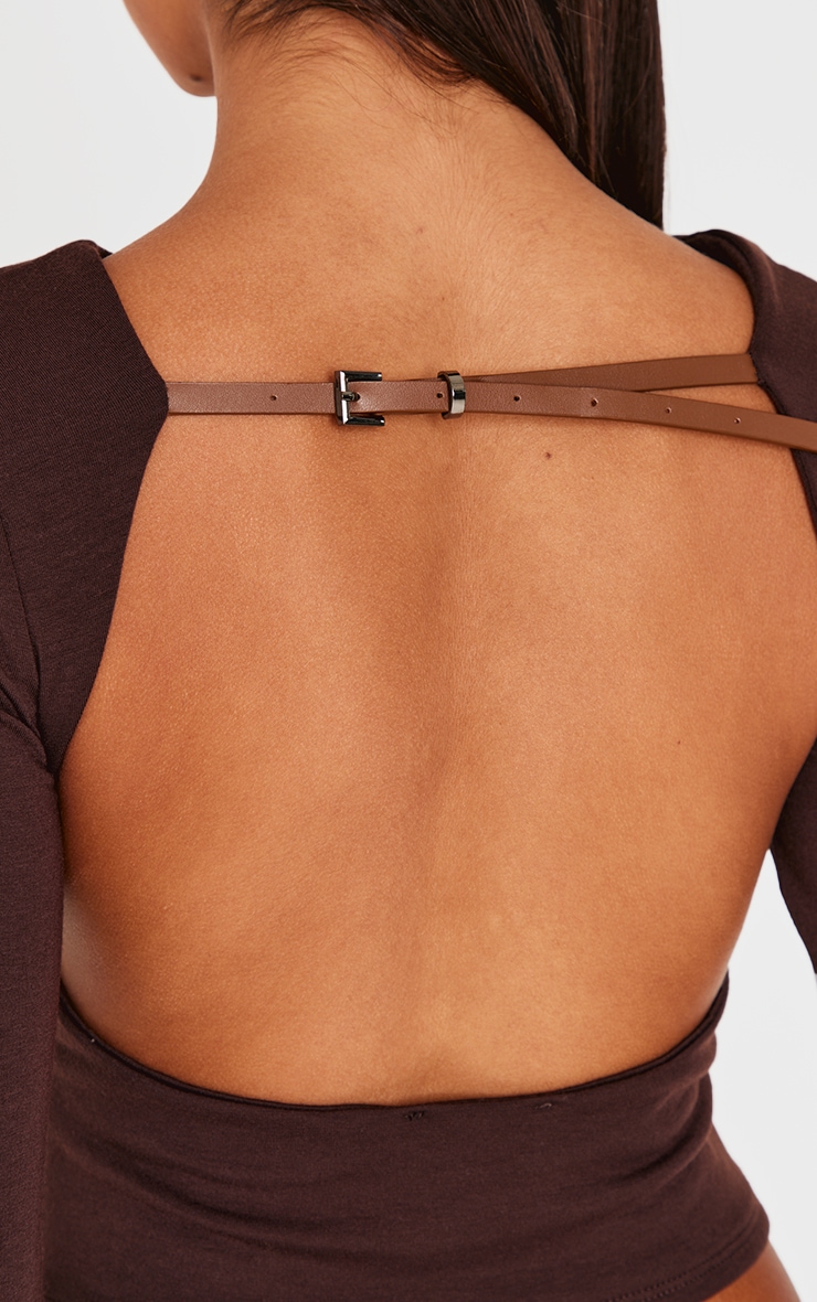 long sleeve open back tie top