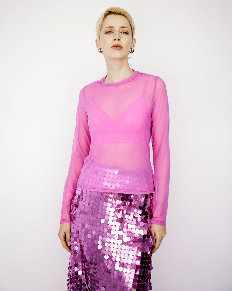 long sleeve pink mesh top