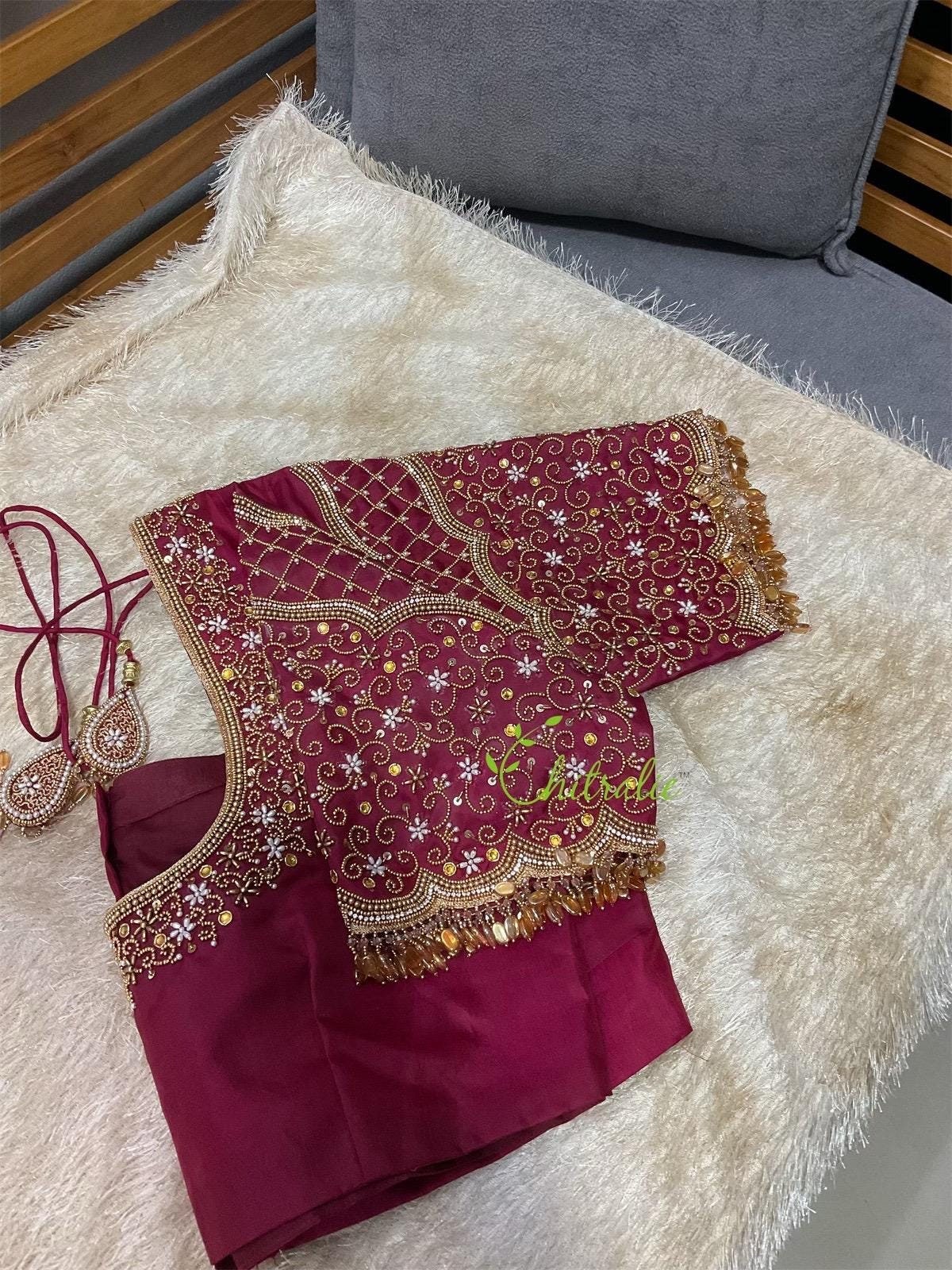 maroon blouse aari work