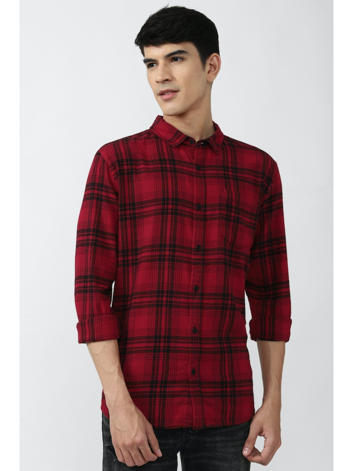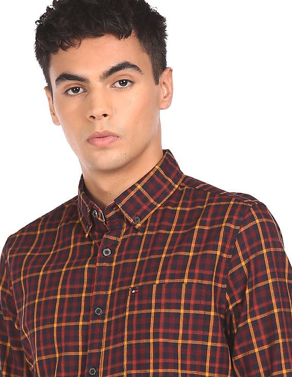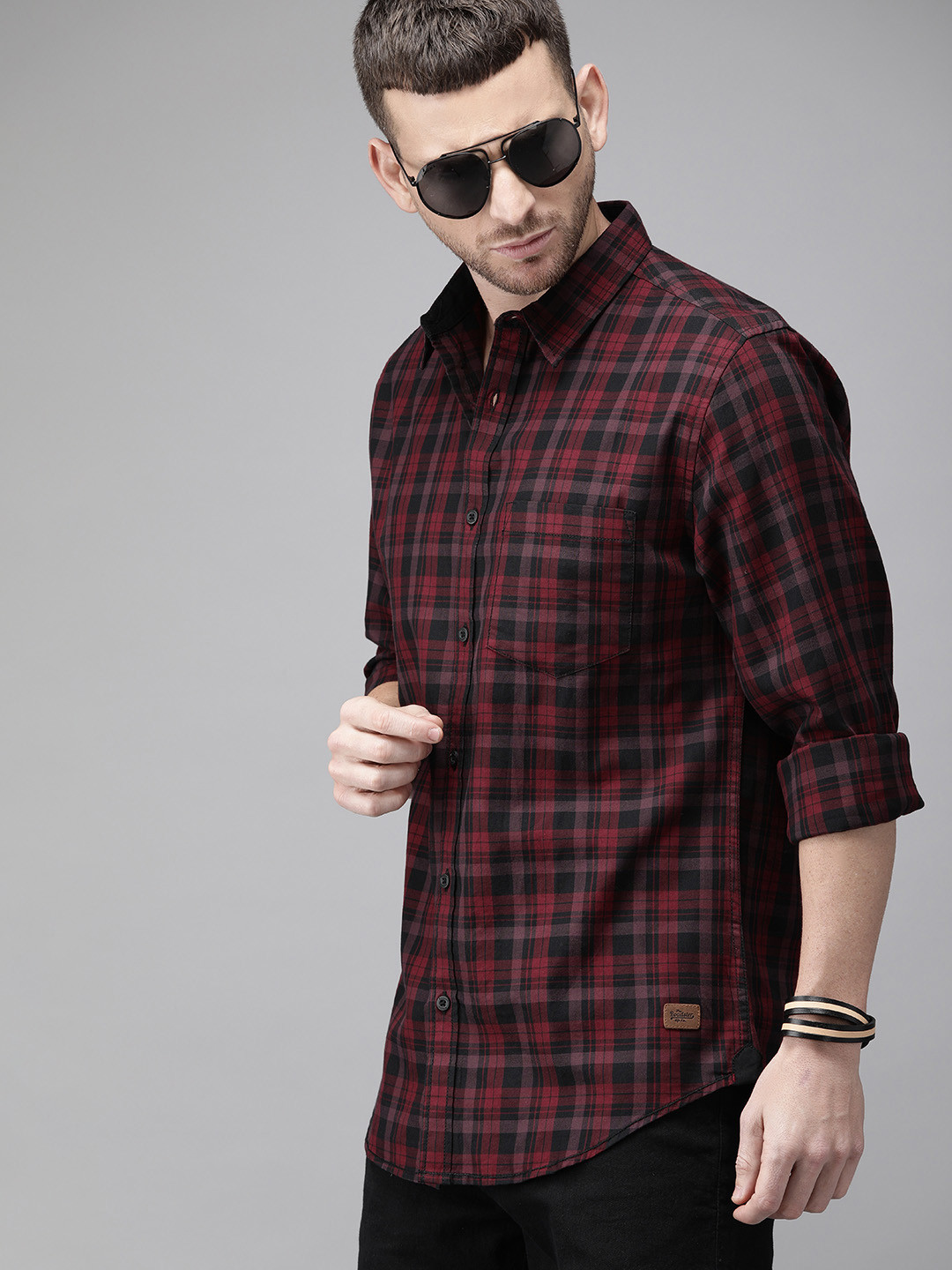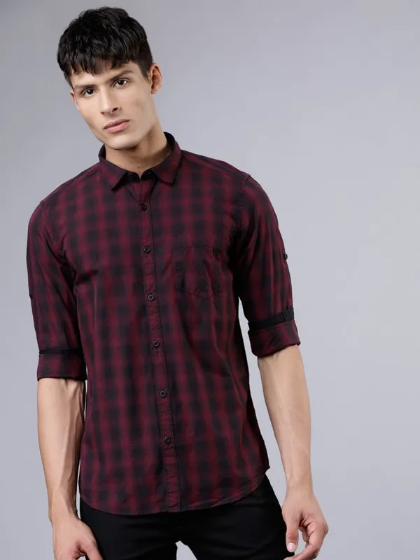 maroon check shirt mens