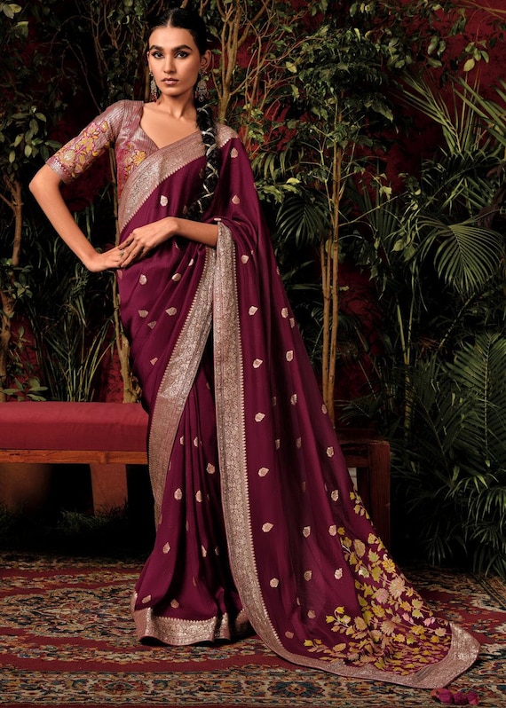 maroon saree combination blouse