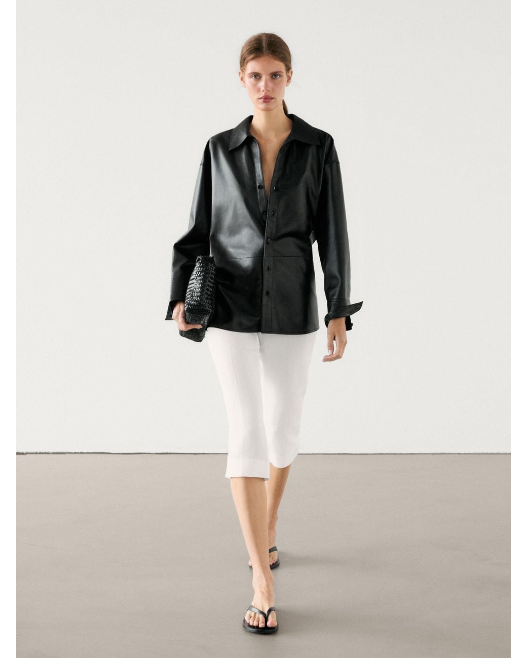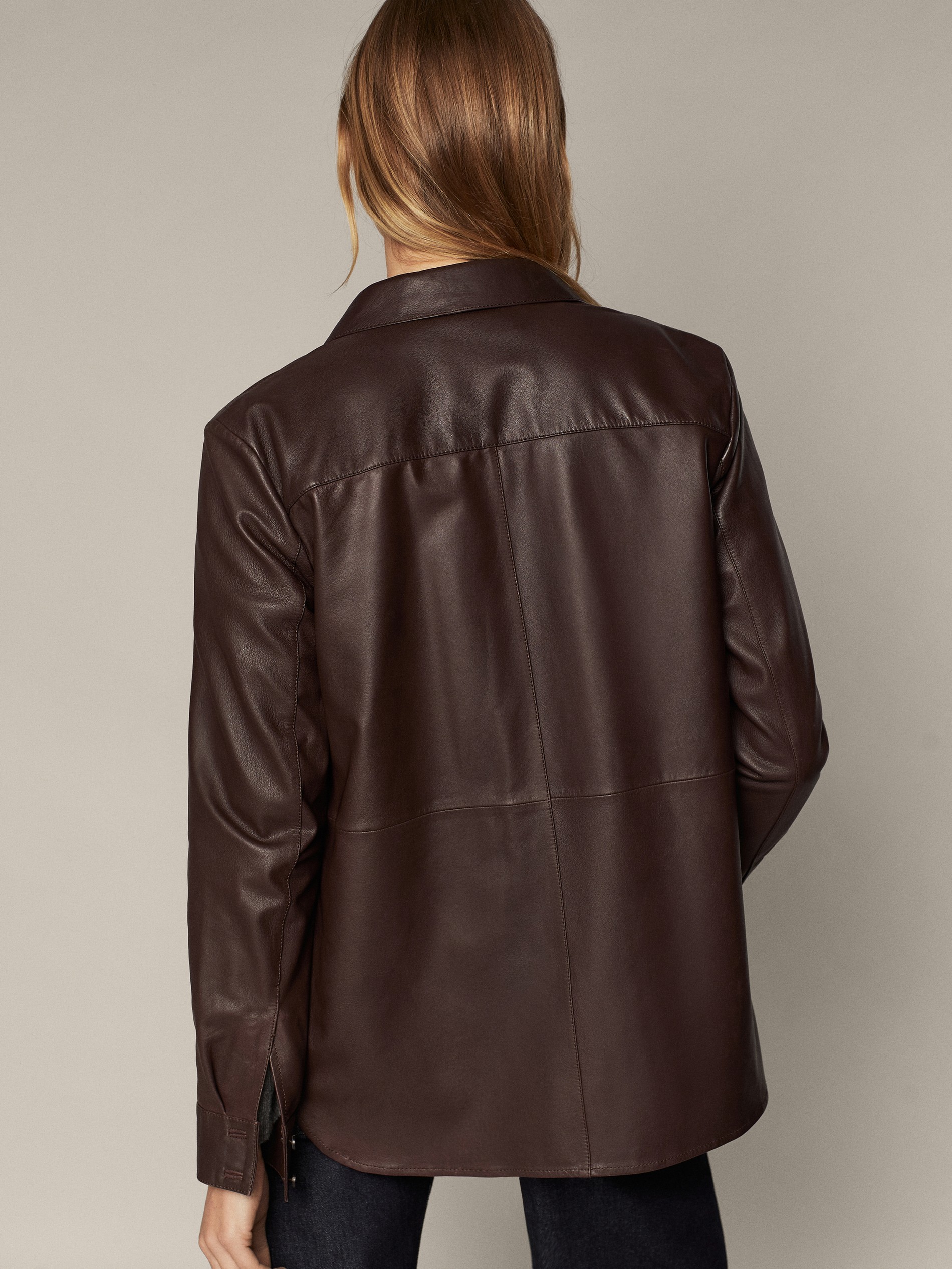 massimo dutti leather shirt