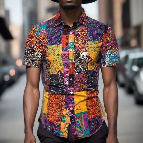 mens patterned shirts short sleeve