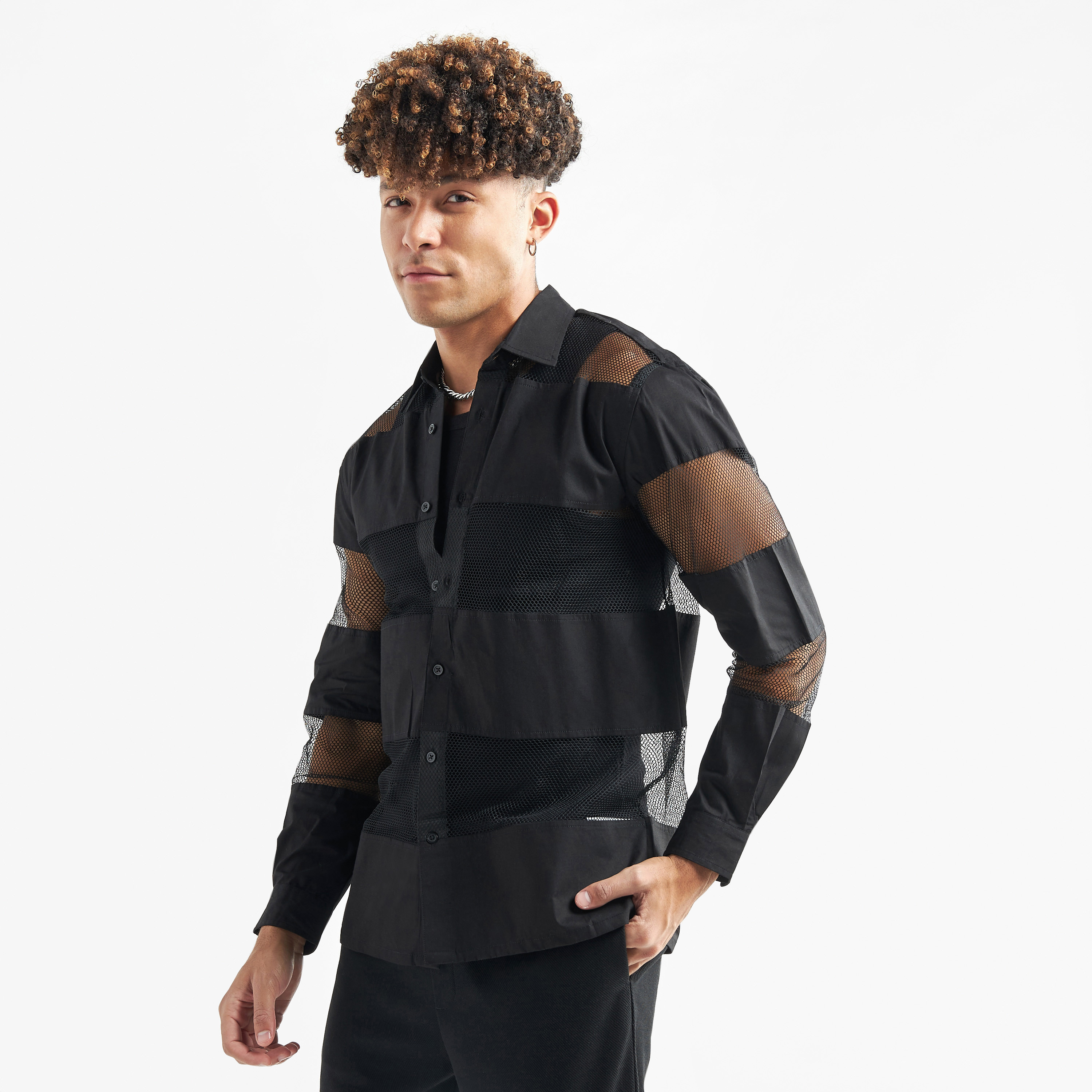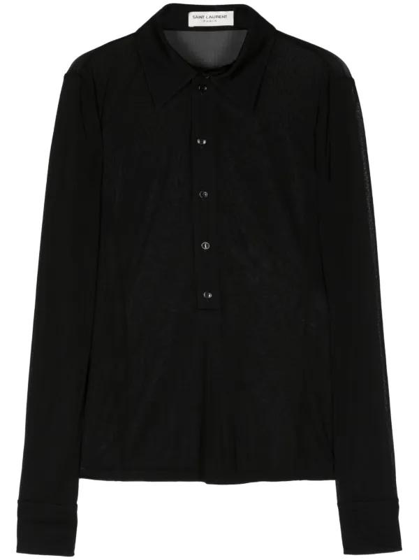 mesh black button up