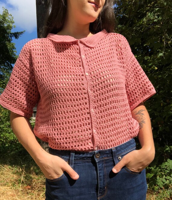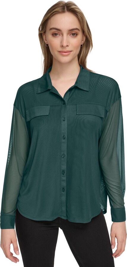 mesh button down top